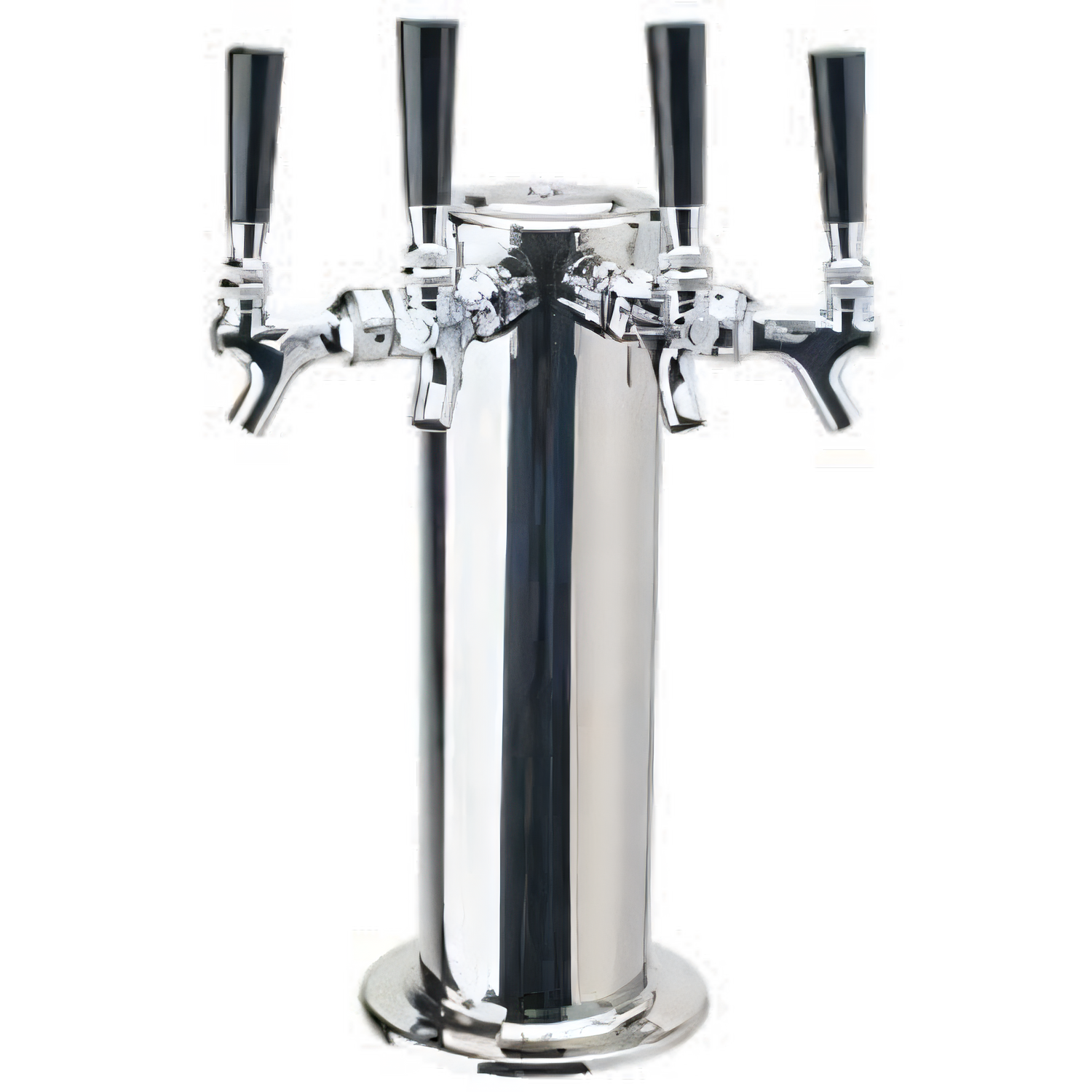 Column Draft Beer Tower, countertop, 4" dia. x 13-3/4"H, air-cooled, (4) chrome-plated brass faucets (handles not included), 10-3/8" faucet clearance (11-1/8" center faucets), 6" dia. base, mounting gaskets & hardware provided, polished stainless steel finish