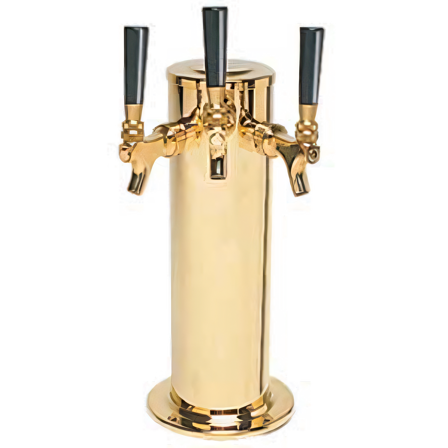 Column Draft Beer Tower, countertop, 4" dia. x 13-3/4"H, air-cooled, (3) brass faucets (handles not included), 10-3/8" faucet clearance (11-1/8" center faucet), 6" dia. base, mounting gaskets & hardware provided, PVD brass finish