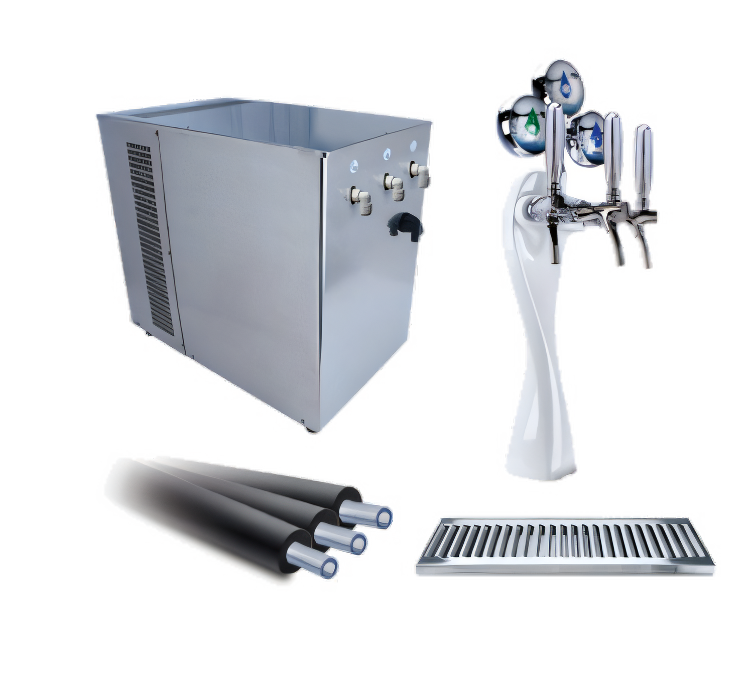 Model H2O-UCM-M-KIT — Ambient • Chilled • SparklingServe premium still or sparkling water straight from the tap and slash your spend on single-use bottles. The Micro Matic Magic Tower kit tucks a powerful chiller/carbonator under the counter while a sculpted white-ceramic tower wows guests front-of-house.