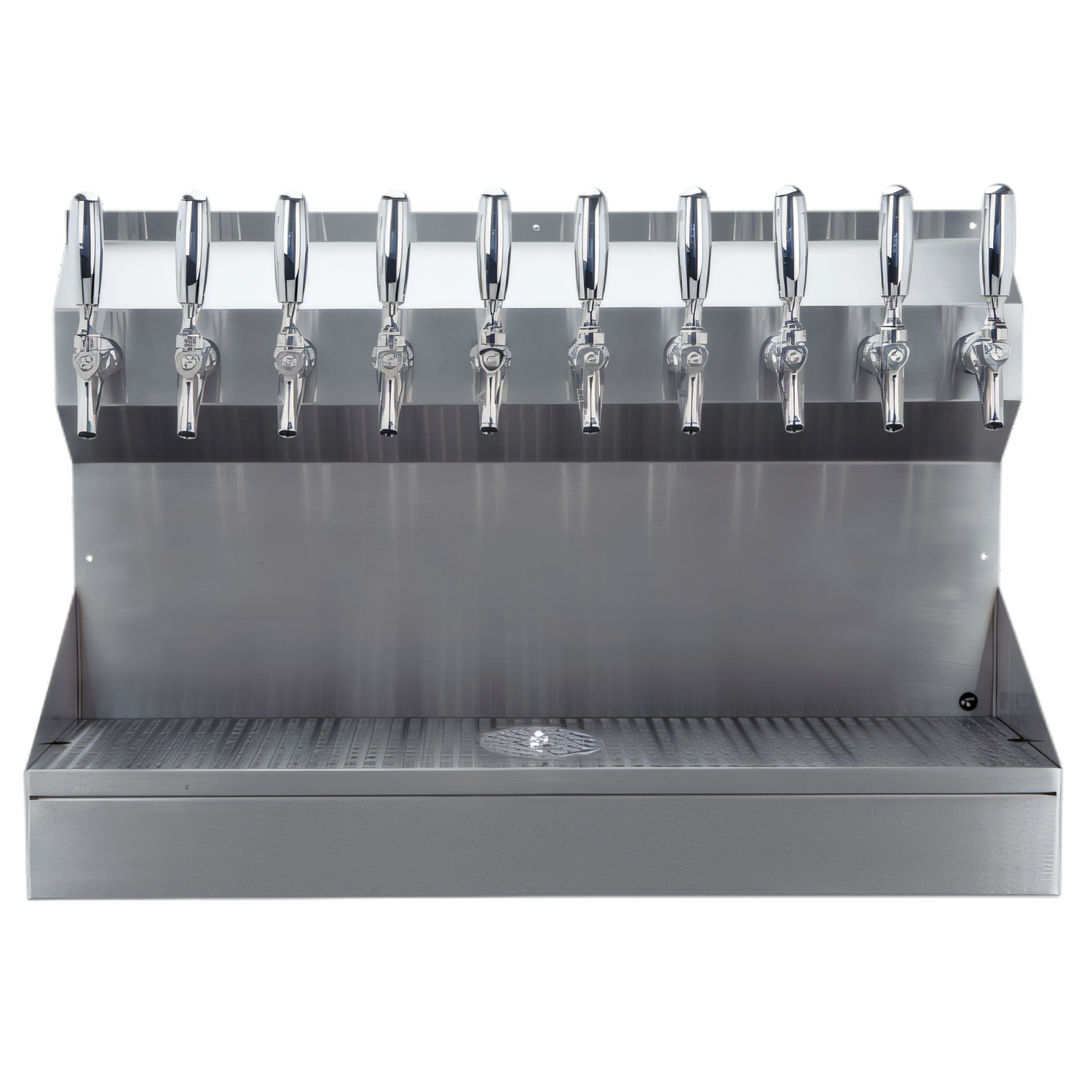 - Ten polished stainless steel faucets on 3" centers accommodate a robust beer list.