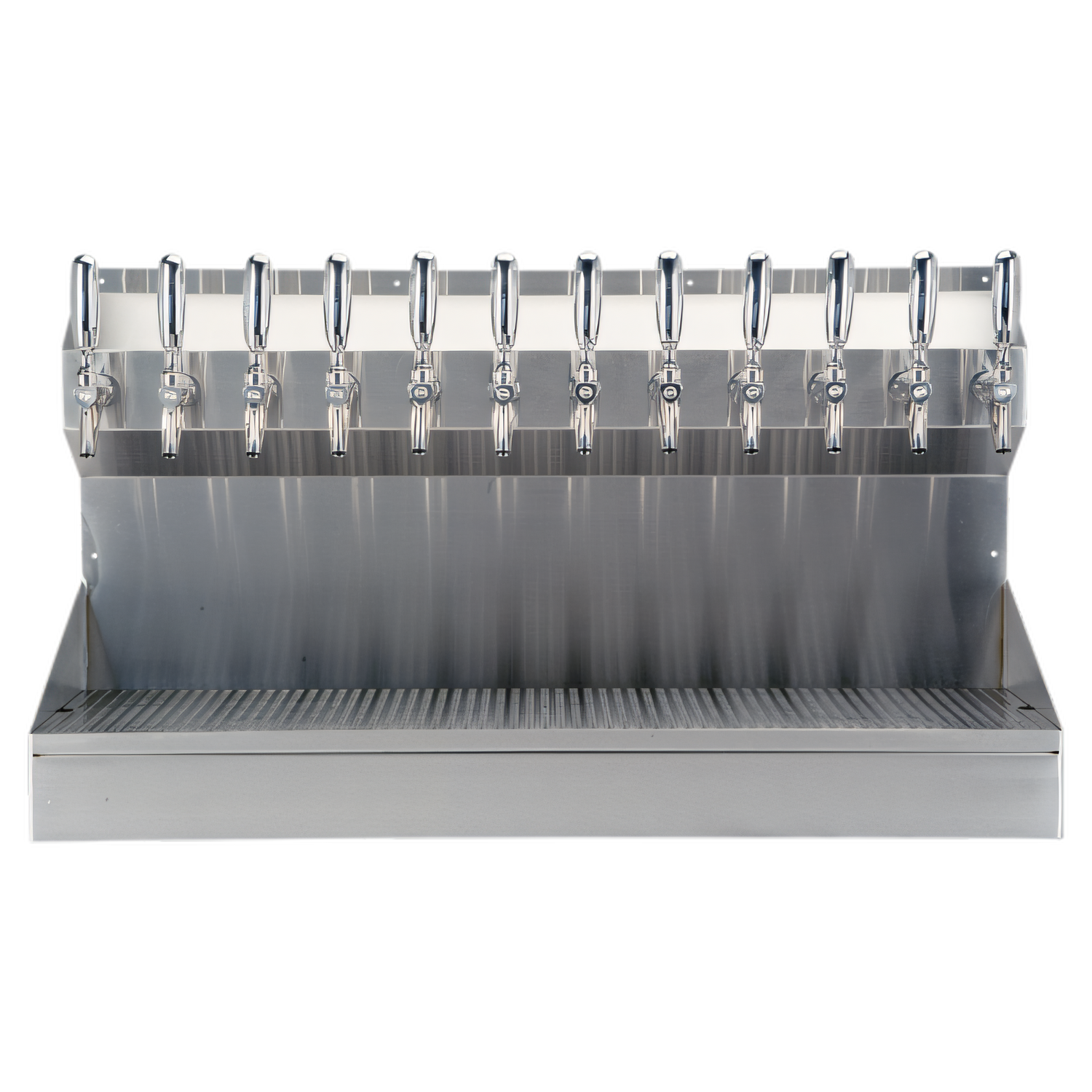 - 12 polished stainless steel faucets on 3" centers with a generous 13" clearance—perfect for growlers and pitchers (handles sold separately).
