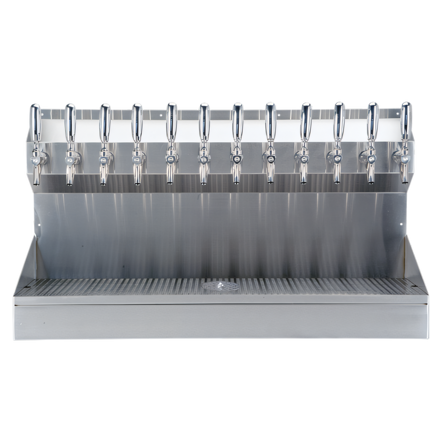 - (12) polished stainless-steel faucets on 3" centers with 13" clearance—ideal for growlers & steins.