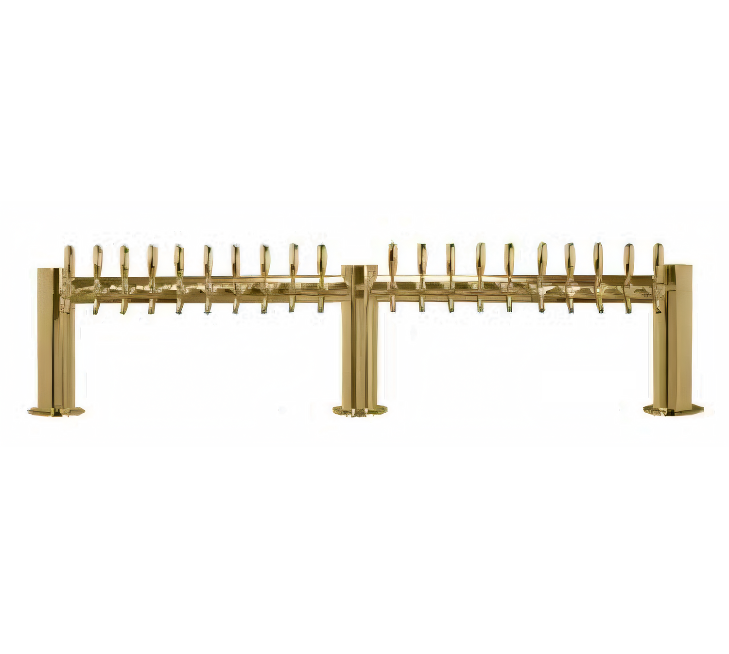 - 20 × PVD brass-plated stainless steel faucets spaced 3" OC with 12" clearance for growlers & tall glassware.
