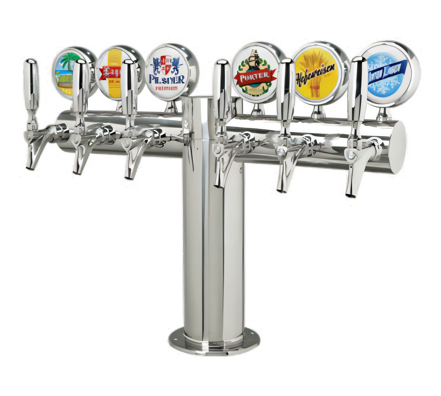 - Six 304 SS faucets on 4" centers—pour lagers, IPAs, hard seltzers & more from a single tower.