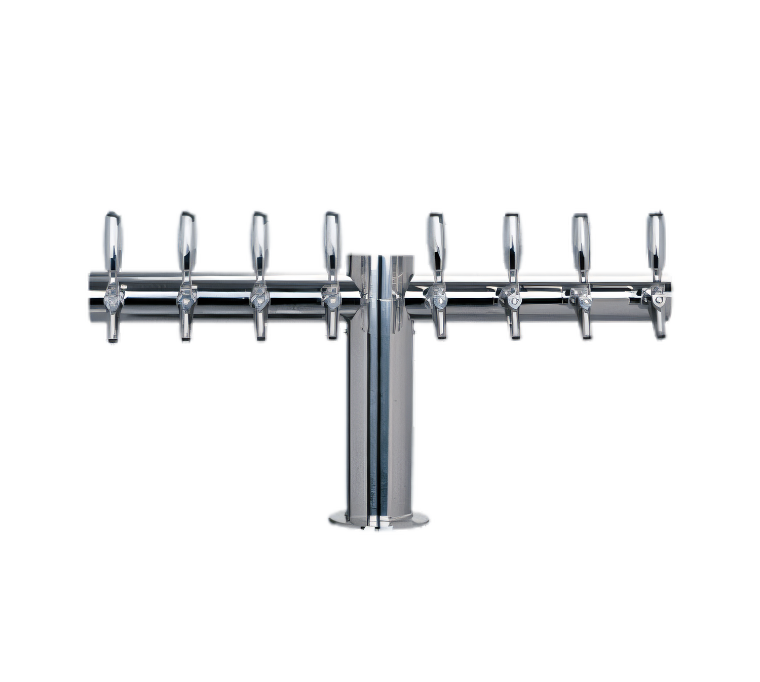 Metropolis “T” Draft Beer Tower – 8 Faucets, 34" Polished Stainless Steel