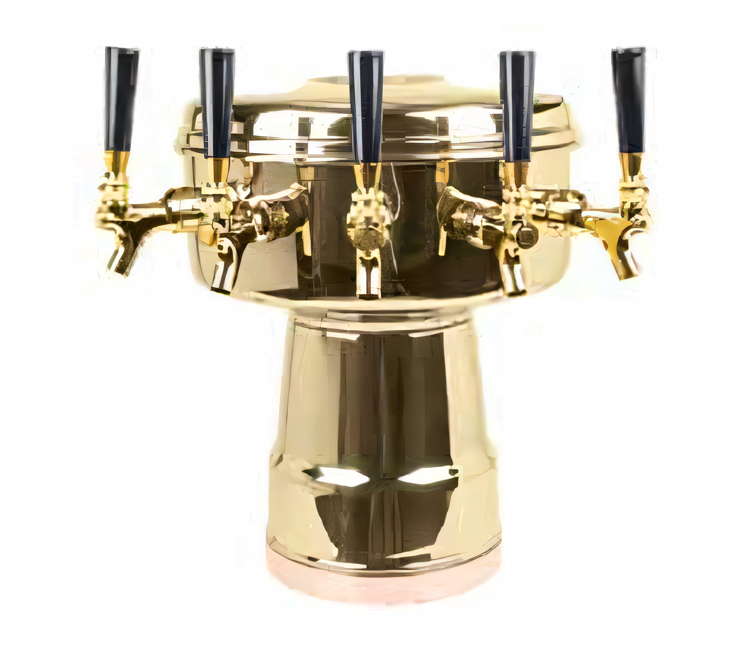 Mushroom Draft Beer Tower – 5 Faucets, Polished Brass