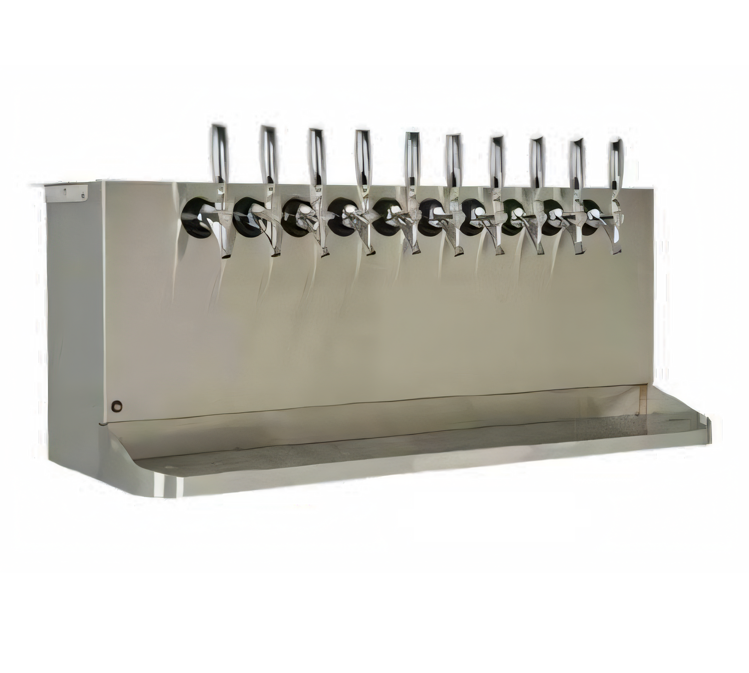 Micro Matic USA • Model SB1038-KR • NSF CertifiedFree up valuable bar-top real estate without sacrificing pour quality. The SB1038-KR mounts under the counter, pairing ten stainless steel faucets with a full-width drip tray and an integrated Kool-Rite™ glycol module — all in a rugged brushed-stainless package that arrives ready to Plug ’N’ Pour.