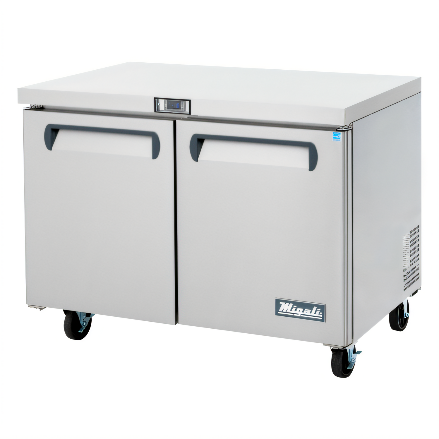 Migali C-U48F-HC 48" undercounter freezer, 12 cu ft, stainless steel, digital temp control, R290, casters, ETL-Sanitation certified.