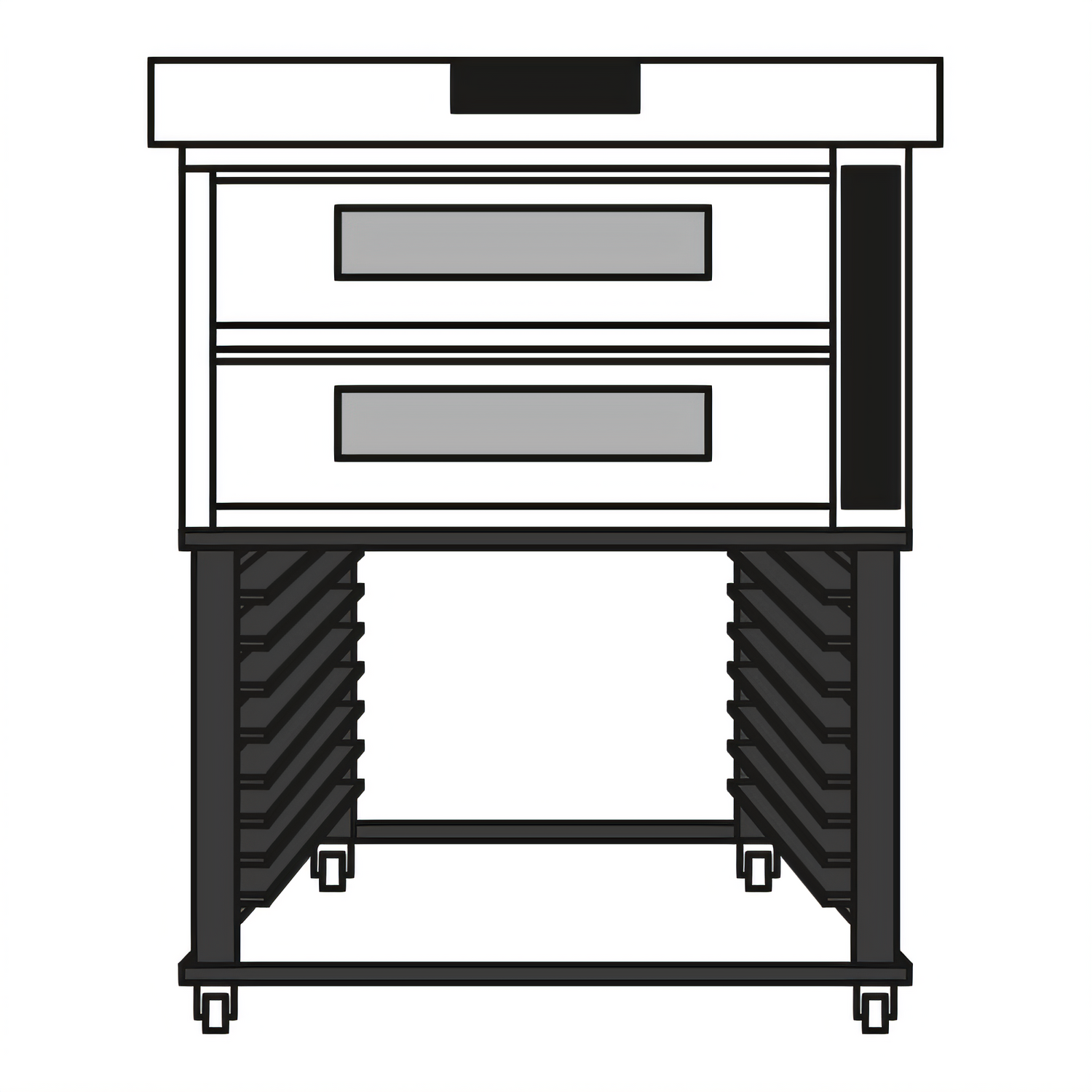 (Product available in stock) iDeck Moretti Forni Pizza Oven, deck-type, electric, (2) 41-1/2"W x 26"D x 5-1/2" H baking chamber, (6) 14" diameter pizzas per deck capacity, refractory stone deck, electronic temperature management, maximum temperature 842°F, temperature and power independently settable for ceiling and deck, includes 36-3/5"H stand with trayholder slides & casters + hood, stainless steel door, CE, cETLus