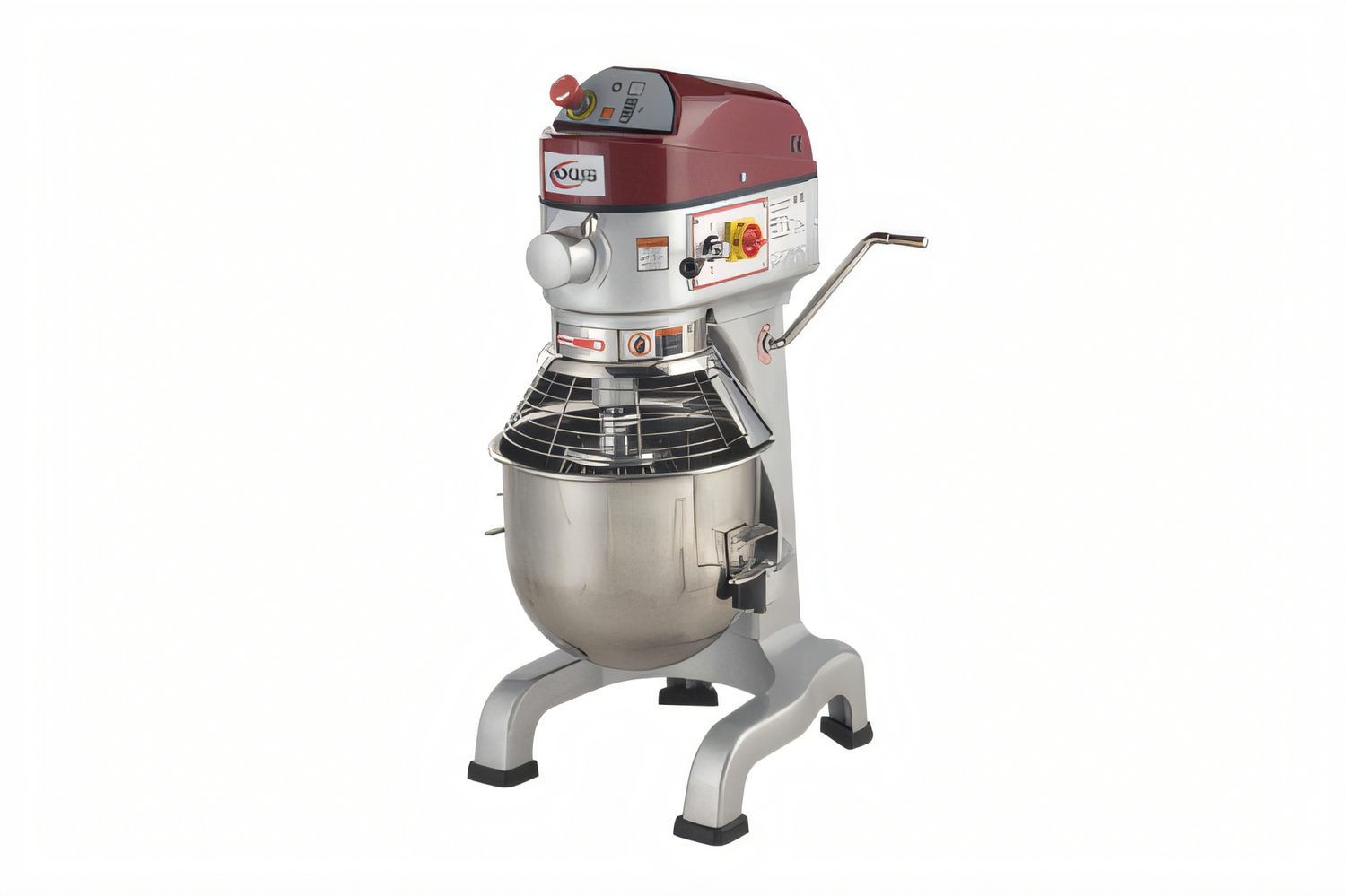 - Stainless-steel safety guard with bowl interlock prevents operation when open