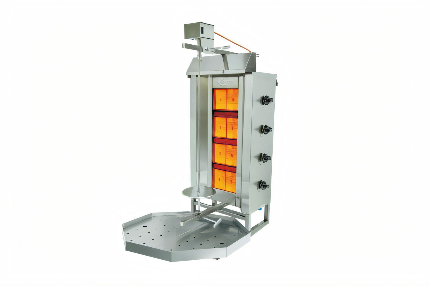 4 Infrared Burners • 176 lb Meat Capacity • 30" SpitDeliver authentic shawarma, gyro, and doner kebab with the power and consistency only Axis can provide. Built from heavy-gauge AISI 304 stainless steel, the AX-VB4 handles up to 176 lb of meat while its top-mounted motor keeps the rotation smooth, safe, and mess-free. Four individually controlled infrared burners put 44,382 BTU of searing heat exactly where you need it—so every slice is juicy, crispy, and profitable.