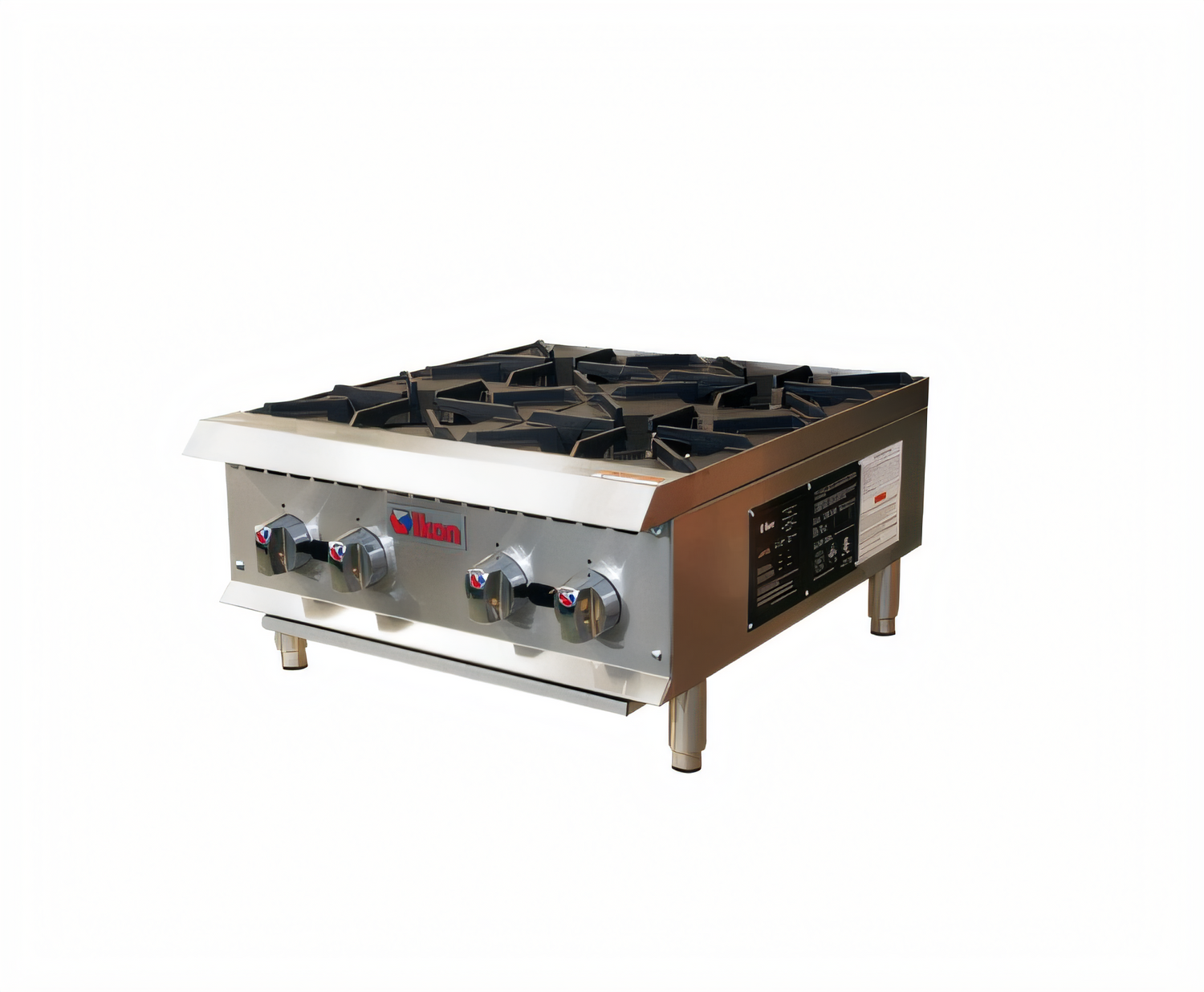 IKON Cooking Hotplate, gas, 24" W x 34.1" D, (4) 25,000 BTU octagonal cast iron burners, cast iron grate, standing pilot light per burner, manual controls, serviceable from front, stainless steel cabinet, adjustable stainless steel legs, 100,000 BTU total, CSA-Sanitation, CSA Flame, CSA Star
