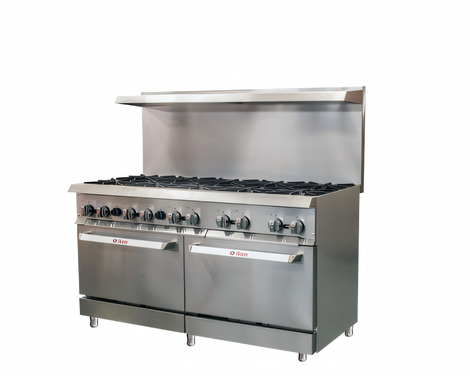 306,000 BTU | Manual Controls | Dual Static OvensReplace an entire cook-line with one powerhouse. The Ikon IR-6B-24MG-60 combines six high-performance open burners, a heavy 3/4″ griddle, and two full-size ovens in a rugged, stainless-steel chassis built for round-the-clock commercial service.
