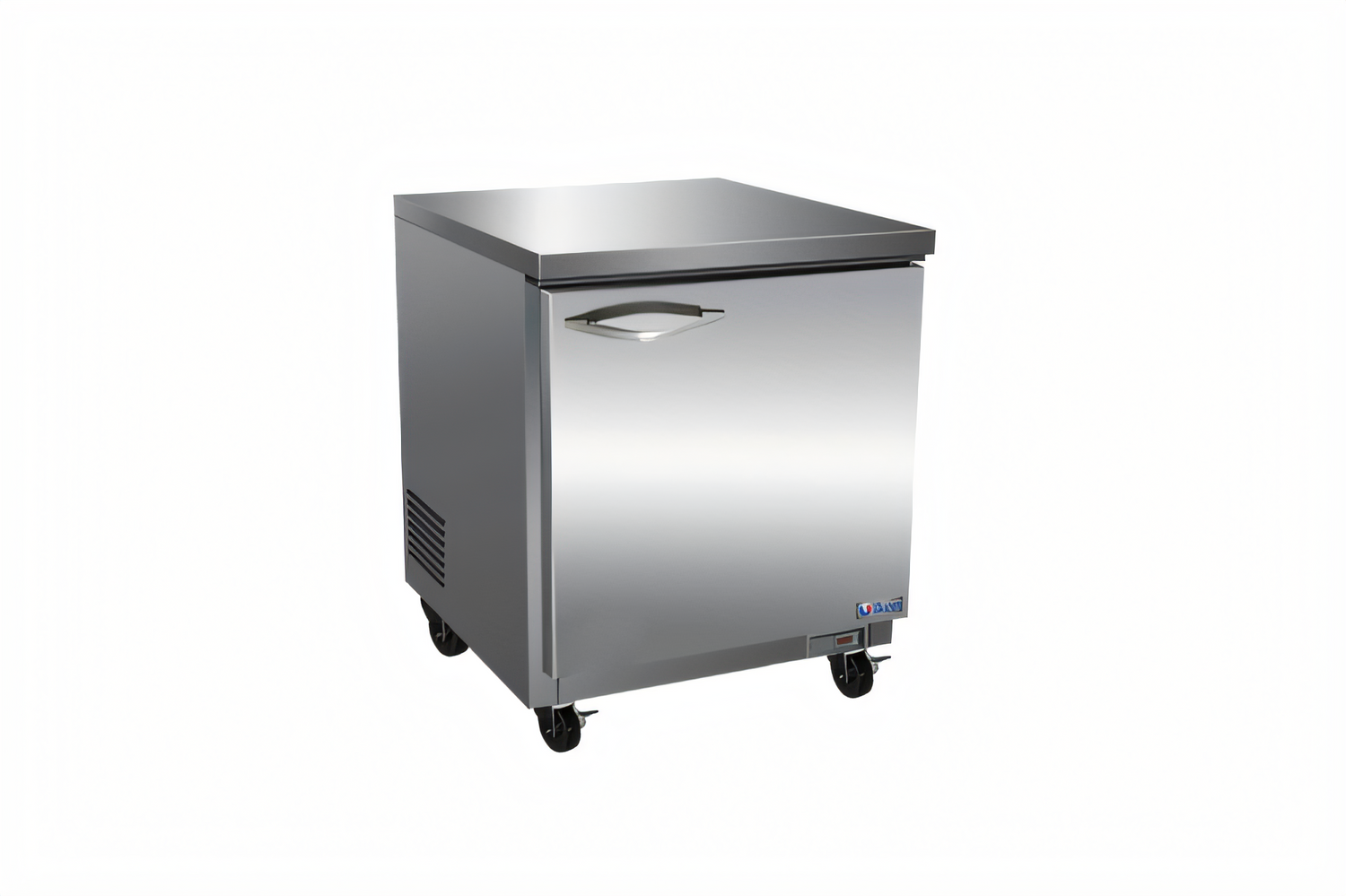 IKON Refrigeration Undercounter Freezer, one-section, 6.5 cu. ft. capacity, 27-4/5"W x 29-9/10"D x 35-1/2"H, stainless steel top, (1) solid hinged anti-frost door, (1) epoxy coated wire shelf, electronic thermostat, 0° to -10°F temperature range, digital LED temperature display, automatic defrost, interior: 304 stainless steel floor, aluminum back wall, ABS side walls & door backs, stainless steel front & sides, 2-1/2" swivel casters (2) braked, rear mounted self-contained refrigeration system, R290 refrigerant, 1/2 HP, 115v/60/1-ph, 1.9 amps, NEMA 5-15P, cETLus, ETL-Sanitation