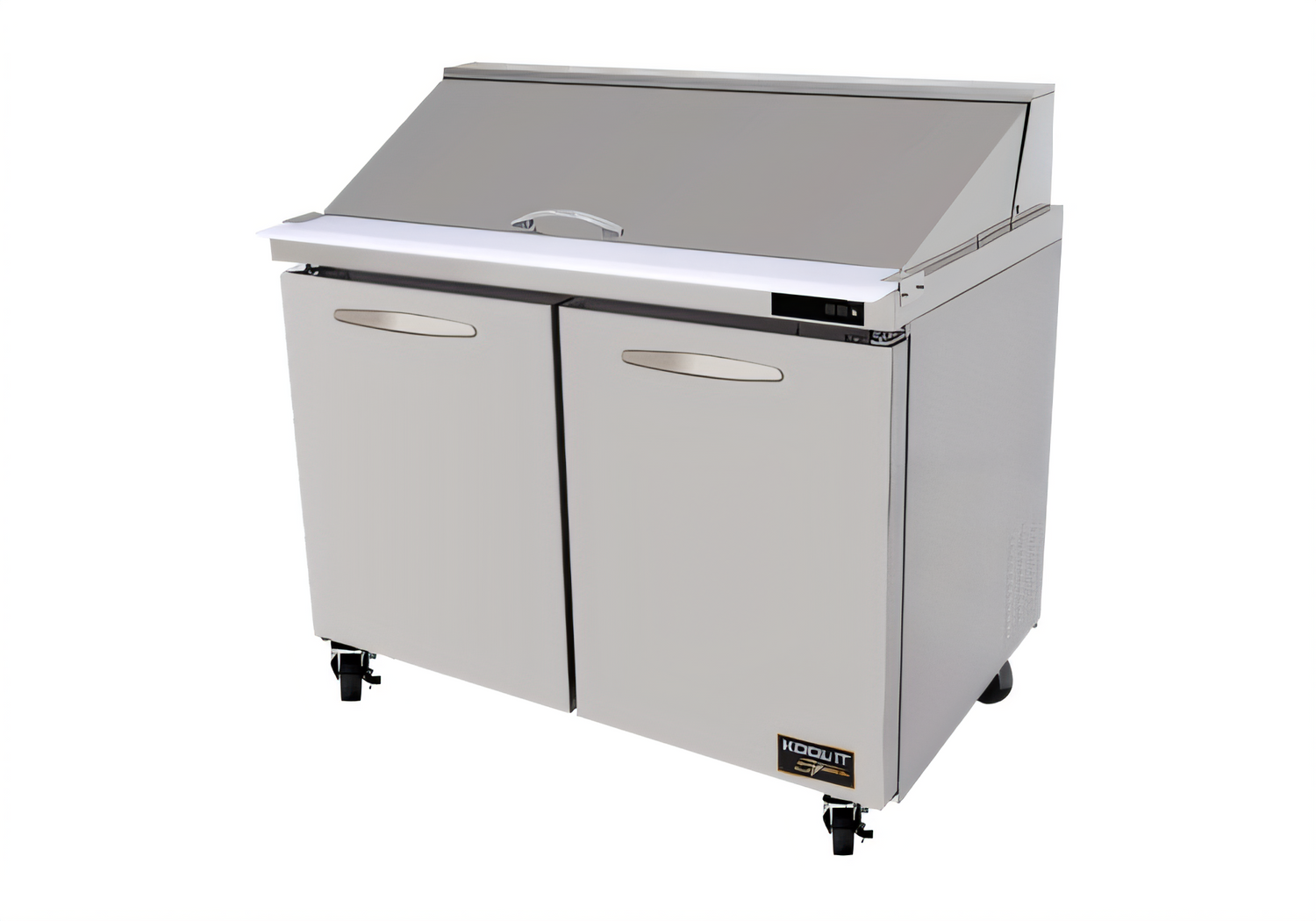 High-capacity, all-stainless prep station with digital control | 13.1 cu ft | 18 pans includedBuilt for bustling delis, pizzerias, and quick-service kitchens, the KSTM-48-2 keeps your toppings ice-cold and right where you need them. An extra-deep mega top holds 18 sixth-size pans (included), while the full-length 9.5" cutting board doubles as a generous assembly space. Durable stainless-steel construction, eco-friendly R290 refrigeration, and the exclusive Signature 40/80 Warranty make this prep table a smart, long-term investment.