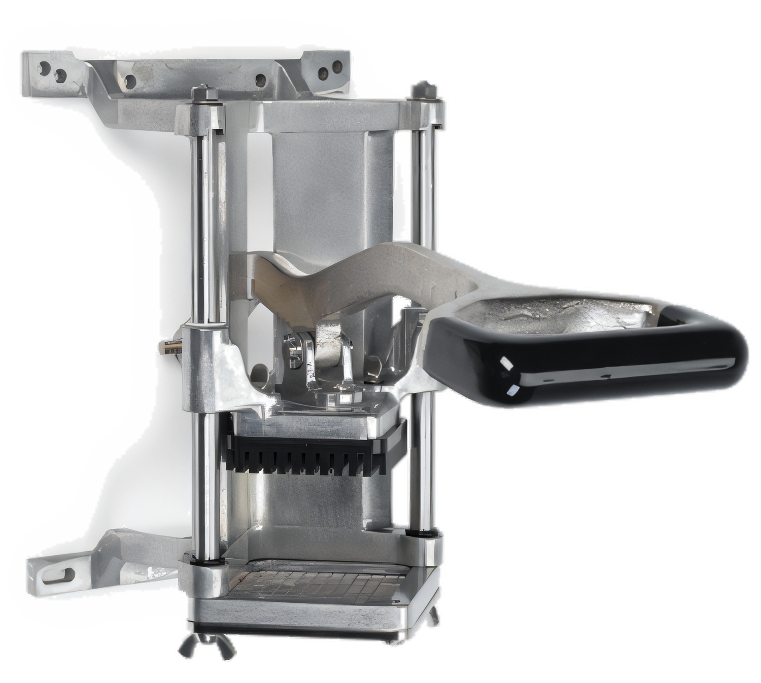 Easy FryKutter™, chops many vegetables, 1/4" cut, wall or countertop mount, exclusive short throw handle, superior engineering to improve leverage for smooth, easy cutting in one stroke