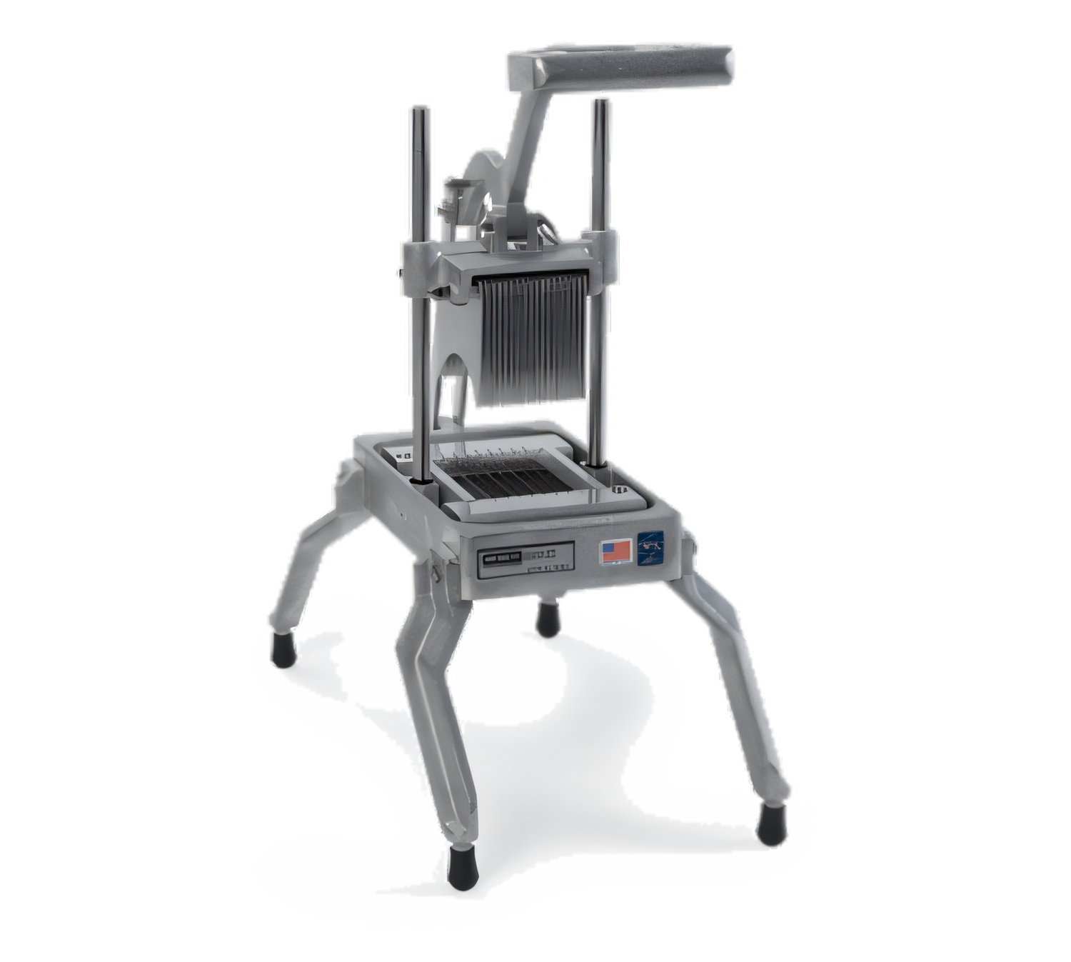 Easy Onion Slicer II™, 3/8" slice, process up to 4" diameter onions, top-down drive slices in one stroke, pretensioned cartridge blade assembly, pusher assembly comes off for easy cleaning, slices many fruits and vegetables