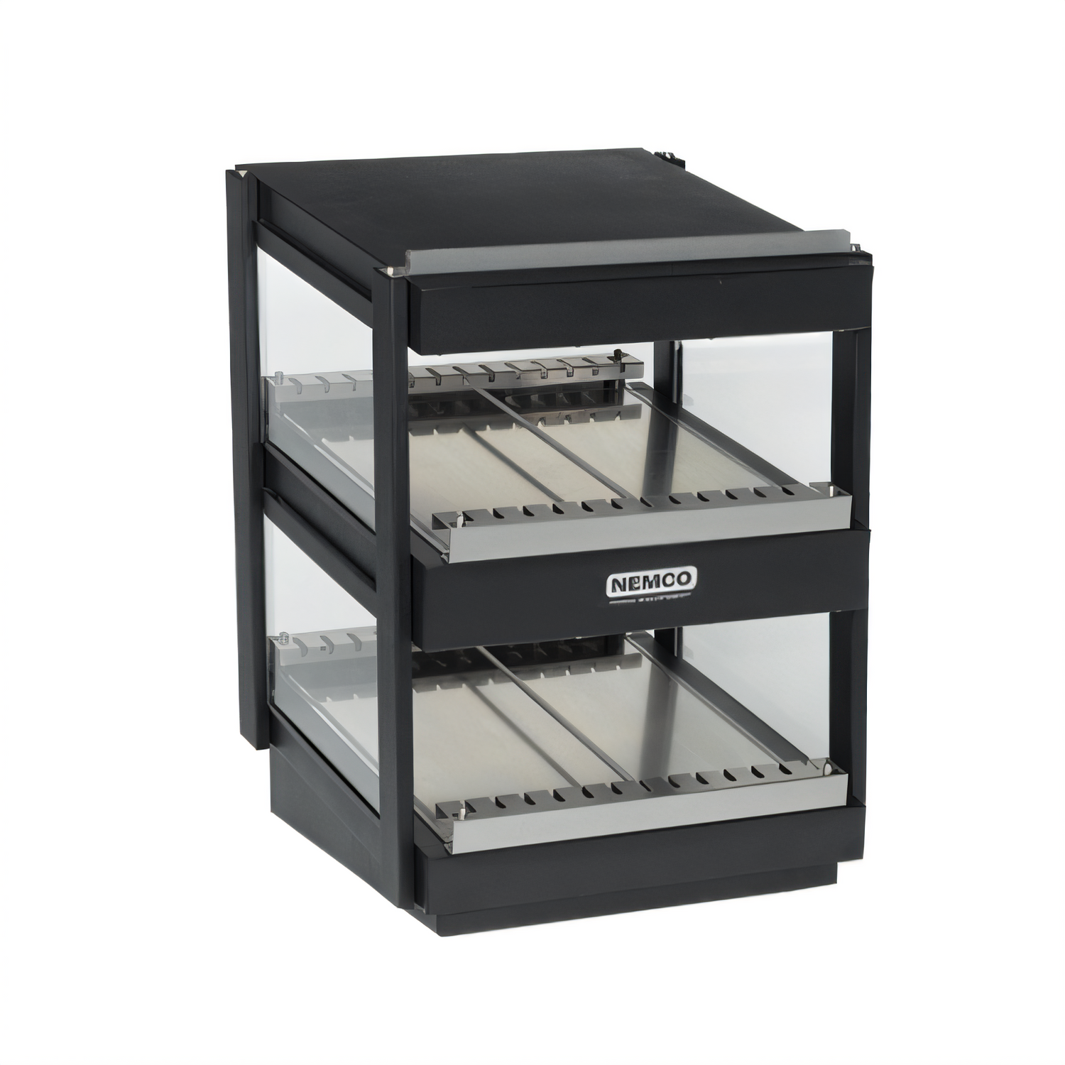 Black powder-coated • Horizontal shelves • 120 V, 1800 WKeep pizza slices, sandwiches, pastries and other grab-and-go favorites hot, fresh and perfectly illuminated with Nemco’s 6480-36-B merchandiser. The horizontal dual-shelf design puts high-margin items front and center while independent controls let you dial in the ideal temperature and lighting for each shelf.