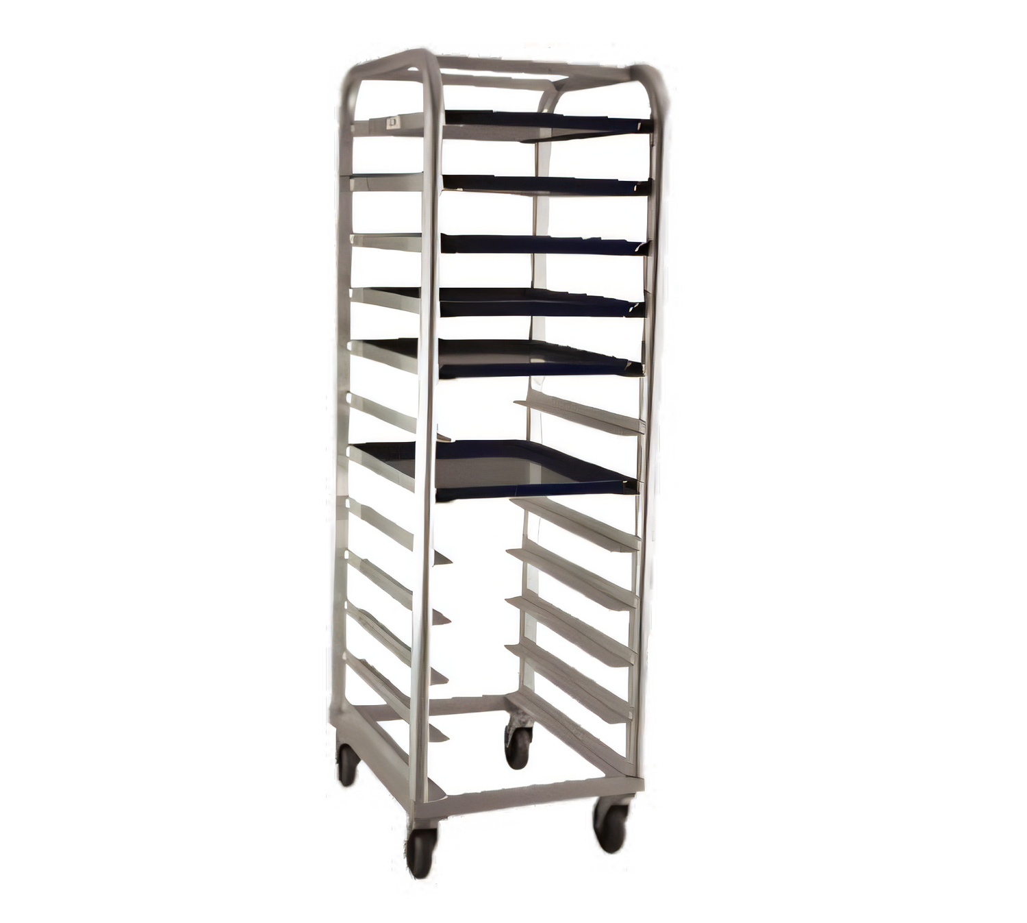Platter Rack, mobile, end loading, open sides, 15-3/4"W x 26-1/2"D x 39-1/4"H, (6) 12" x 26" platters, slides on 5" centers, all welded aluminum construction, 5" platform casters, NSF, Made in USA, (standard factory lead time)