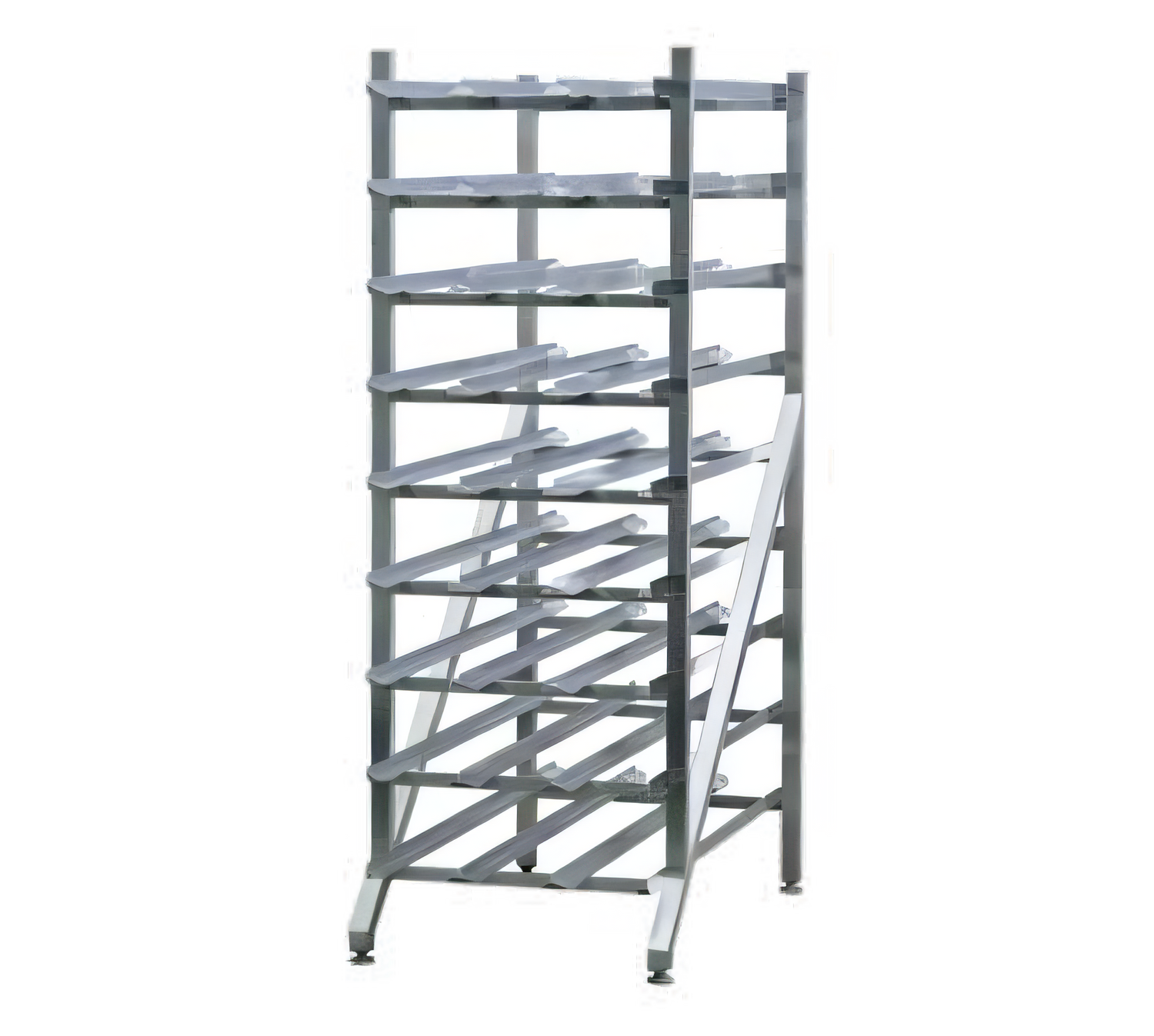 Can Storage Rack, stationary design with adjustable feet, sloped glides for automatic can retrieval, aluminum construction, holds (216) #10 or (297) #5 cans, NSF, Made in USA, (standard factory lead time)