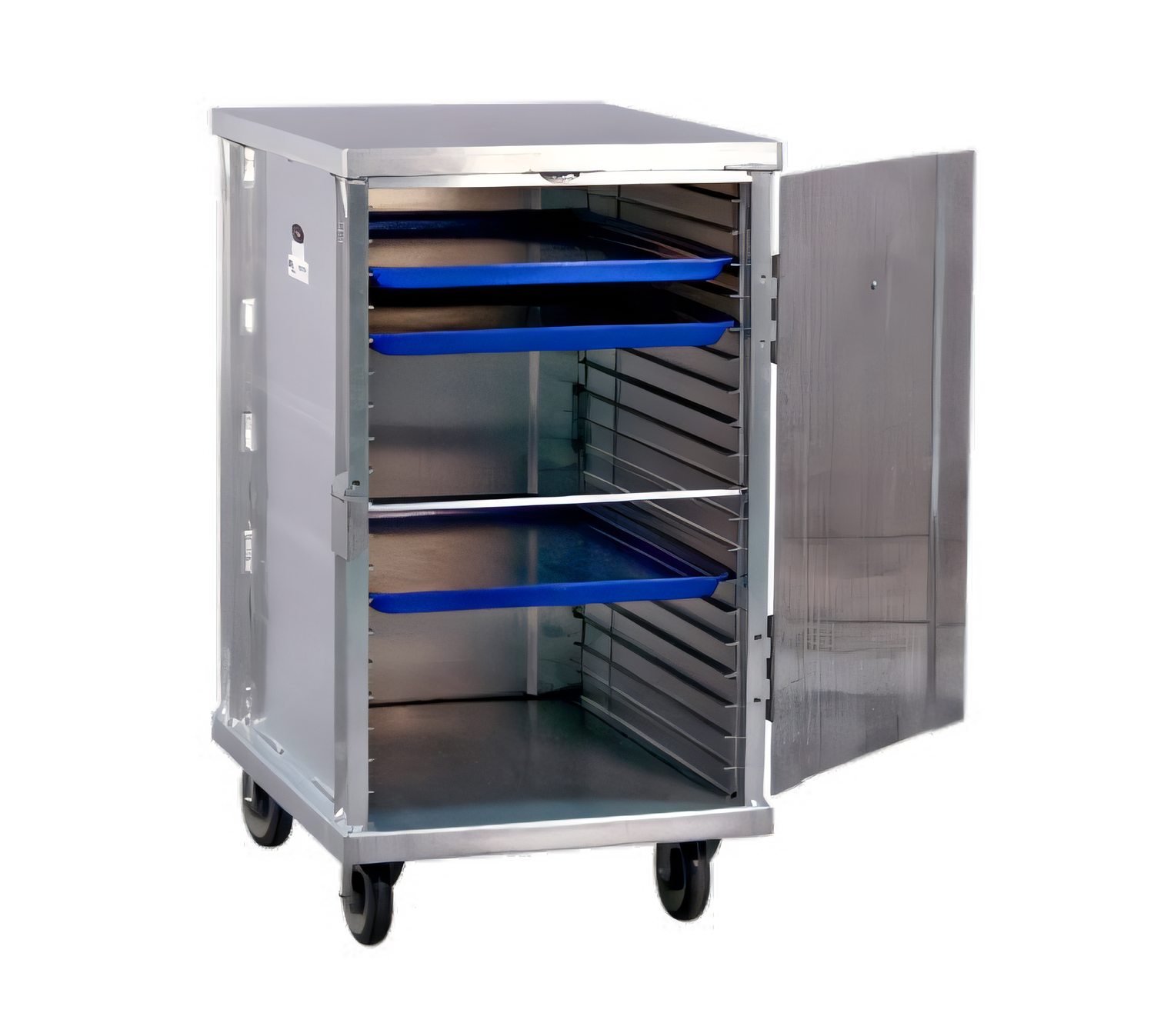 Pan Rack, mobile, 1/2 height, enclosed cabinet, (20) 18" x 26" pan capacity, extrusions on 1-1/2" centers, all welded aluminum construction, front loading, (4) 5" platform swivel casters, NSF, Made in USA, (standard factory lead time)