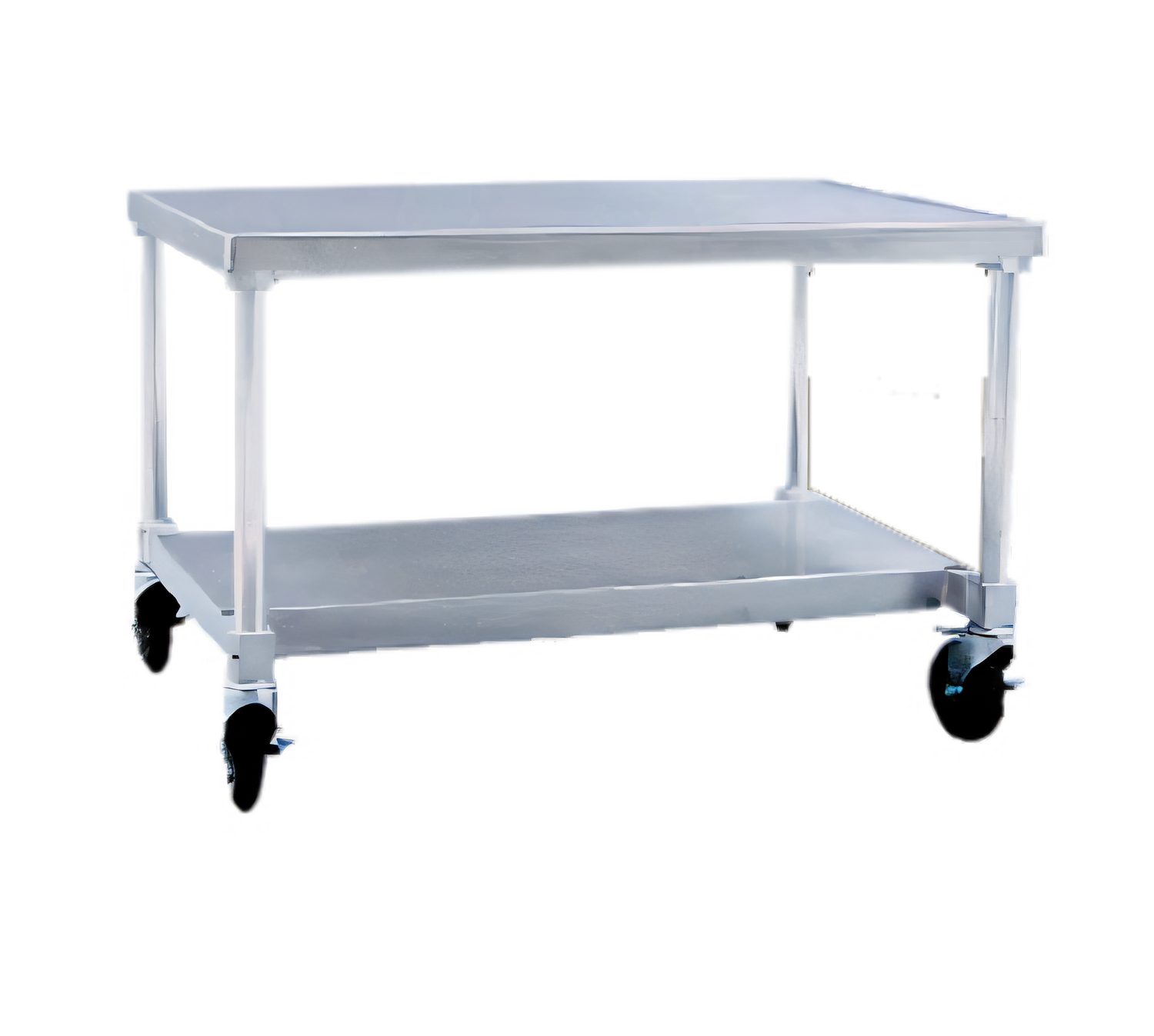 Equipment Stand, mobile, 60"W x 30"D x 24"H, removable 12 gauge top with marine edge, 1000 lbs. capacity, open base, aluminum construction, 5" non-marking casters with brakes, NSF, KD, Made in USA, (standard factory lead time)
