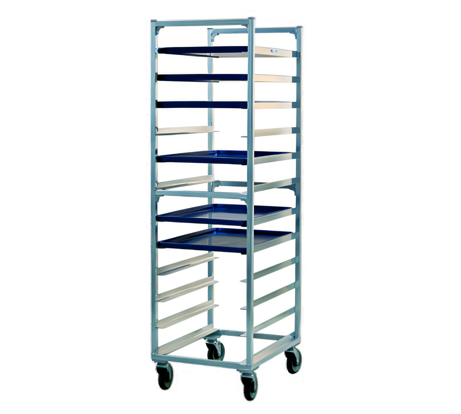 Bun Pan Rack, mobile, full height, end loading, open sides, accommodates (12) 18" x 26" pans, slides on 5" centers, all welded aluminum construction, (4) 5" platform casters, NSF, Made in USA, (standard factory lead time)