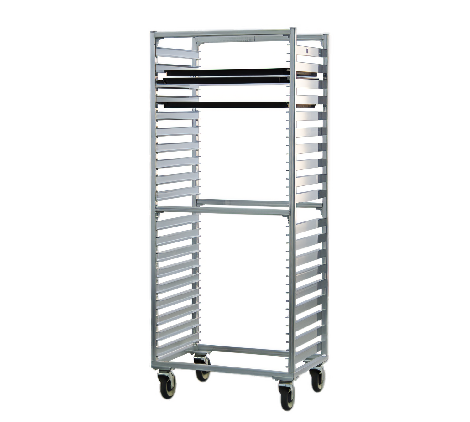 Bun Pan Rack, mobile, full height, open sides, accommodates (38) 18" x 26" pans, slides on 1-1/2" centers, all welded aluminum construction, side loading, (4) 5" platform swivel casters, NSF, Made in USA, (standard factory lead time)