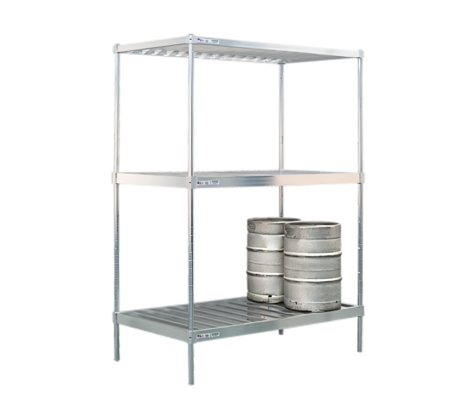 Keg Shelf, 72"W x 34"D, (8) keg capacity or (21) keg capacity, aluminum construction, Made in USA, (standard factory lead time)