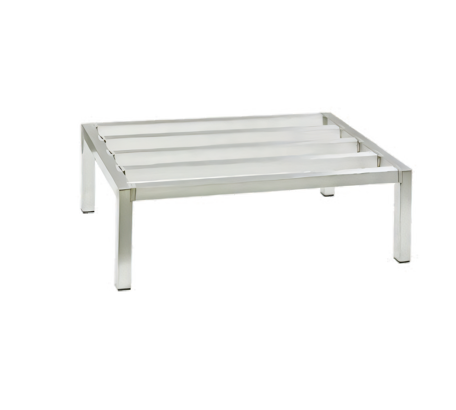 Dunnage Rack, 60"W x 20"D x 12"H, all welded aluminum construction, 1-1/2" x 1-1/2" x 0.070" wall tubing, plastic inserts on feet, 1500 lbs. weight capacity, NSF, Made in USA, (standard factory lead time)