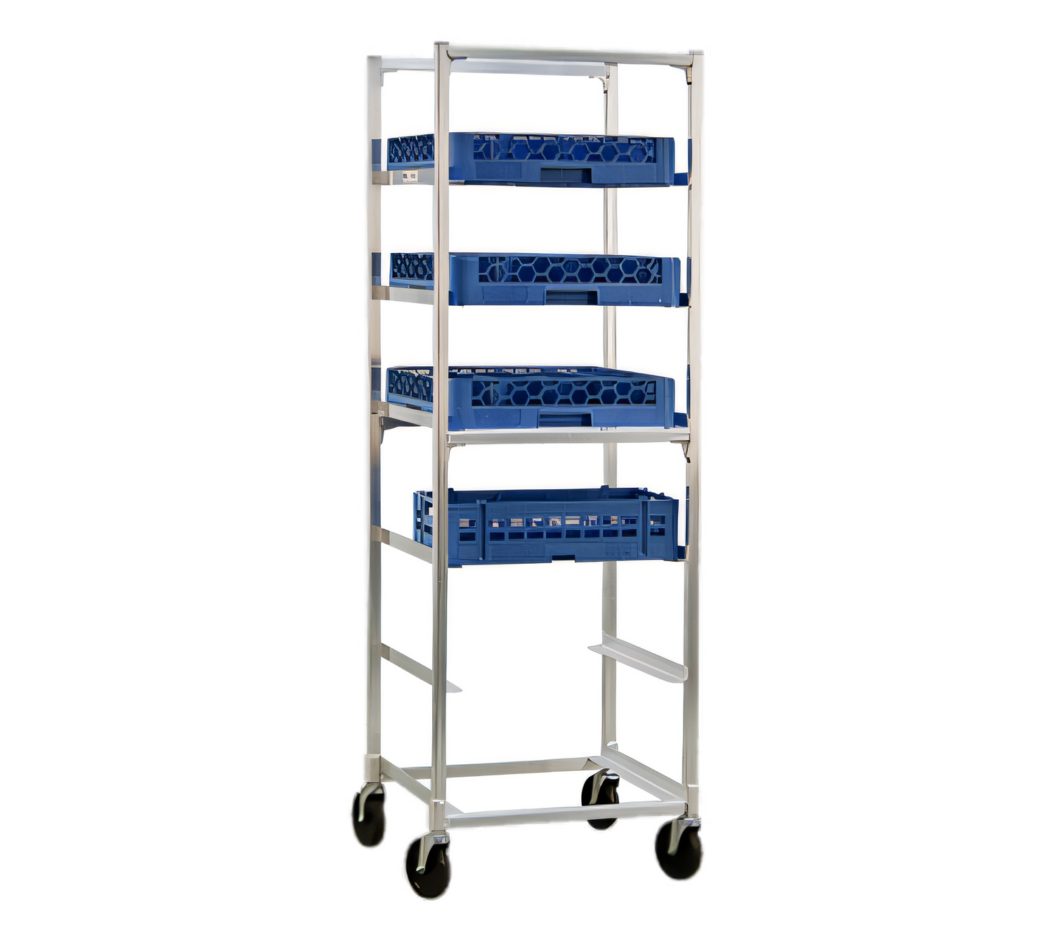 Cup/Glass Cart, mobile, full height, open sides, with slides for (6) 20" x 20" racks, slides on 10" centers, all-welded aluminum construction, front loading, 5" stem swivel casters, NSF, Made in USA, (standard factory lead time)