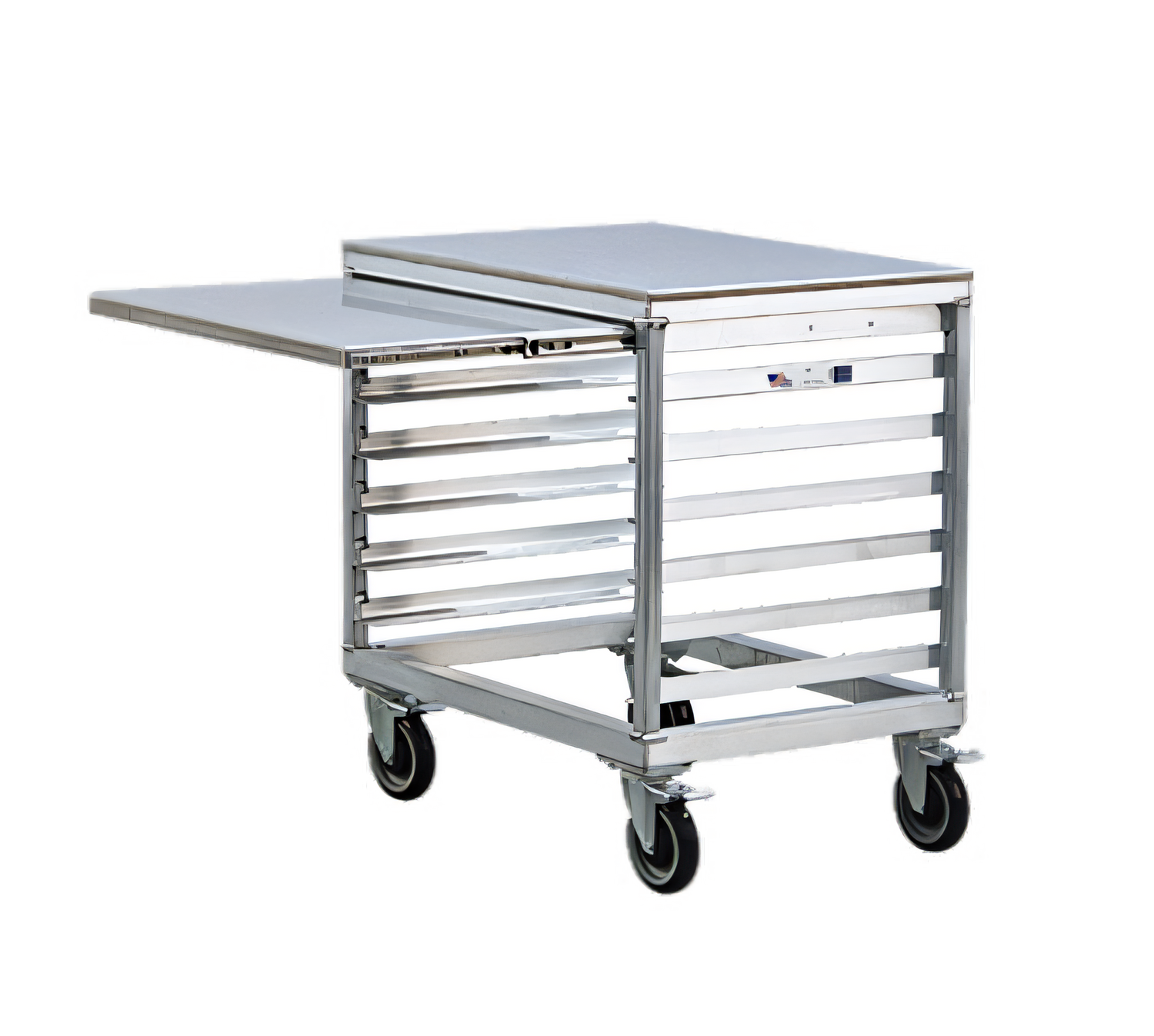 Slicer Stand, 28-3/8"W x 30"H x 20"D, holds (6) 18" x 26" pans on 3" centers, 5" swivel casters with total locks (#C566), Made in USA, (standard factory lead time)
