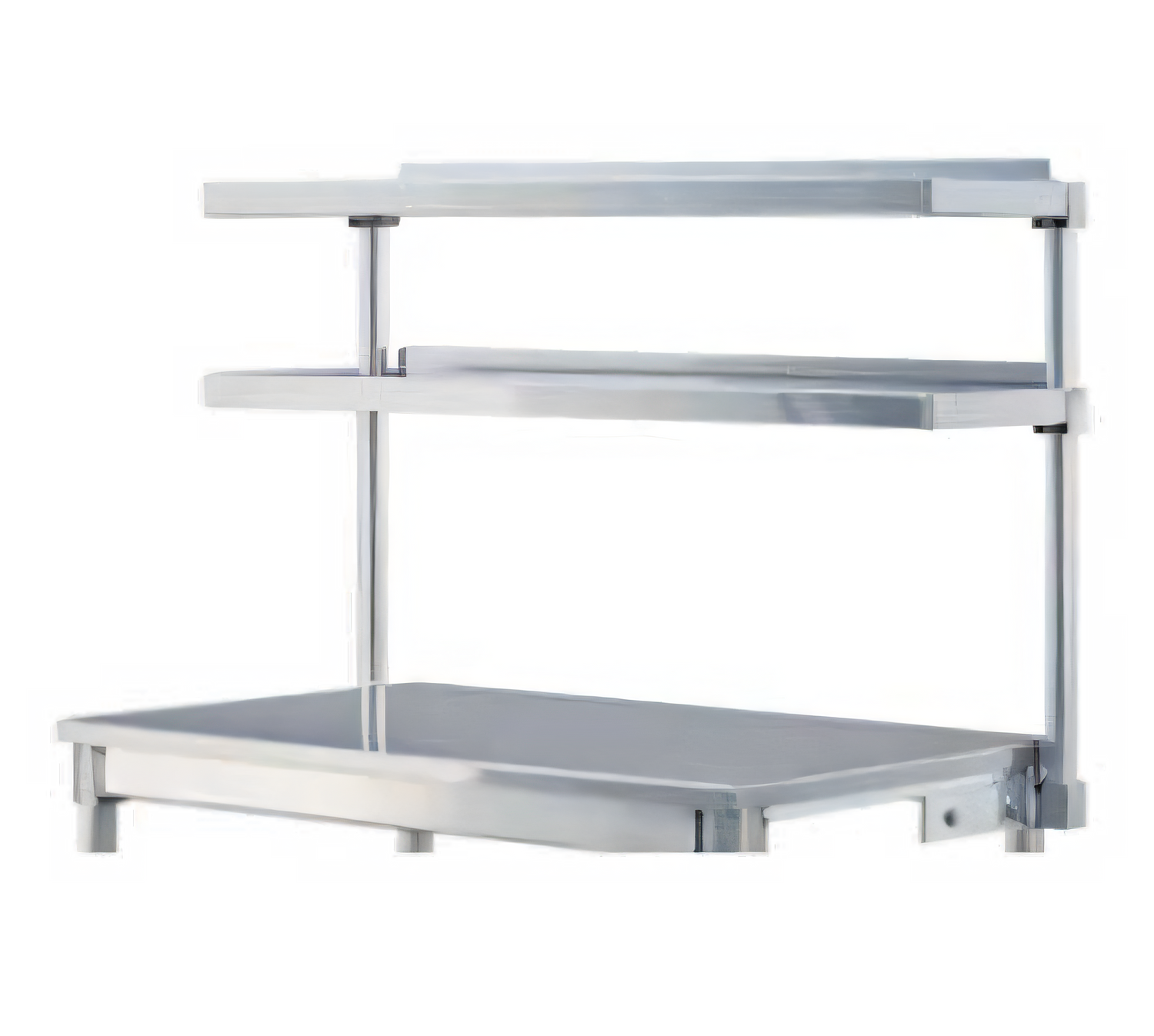 Cantilever Overshelf, table mount, 12" x 36" stainless steel shelf, adjustable posts & brackets, NSF, Made in USA, (custom factory lead time)