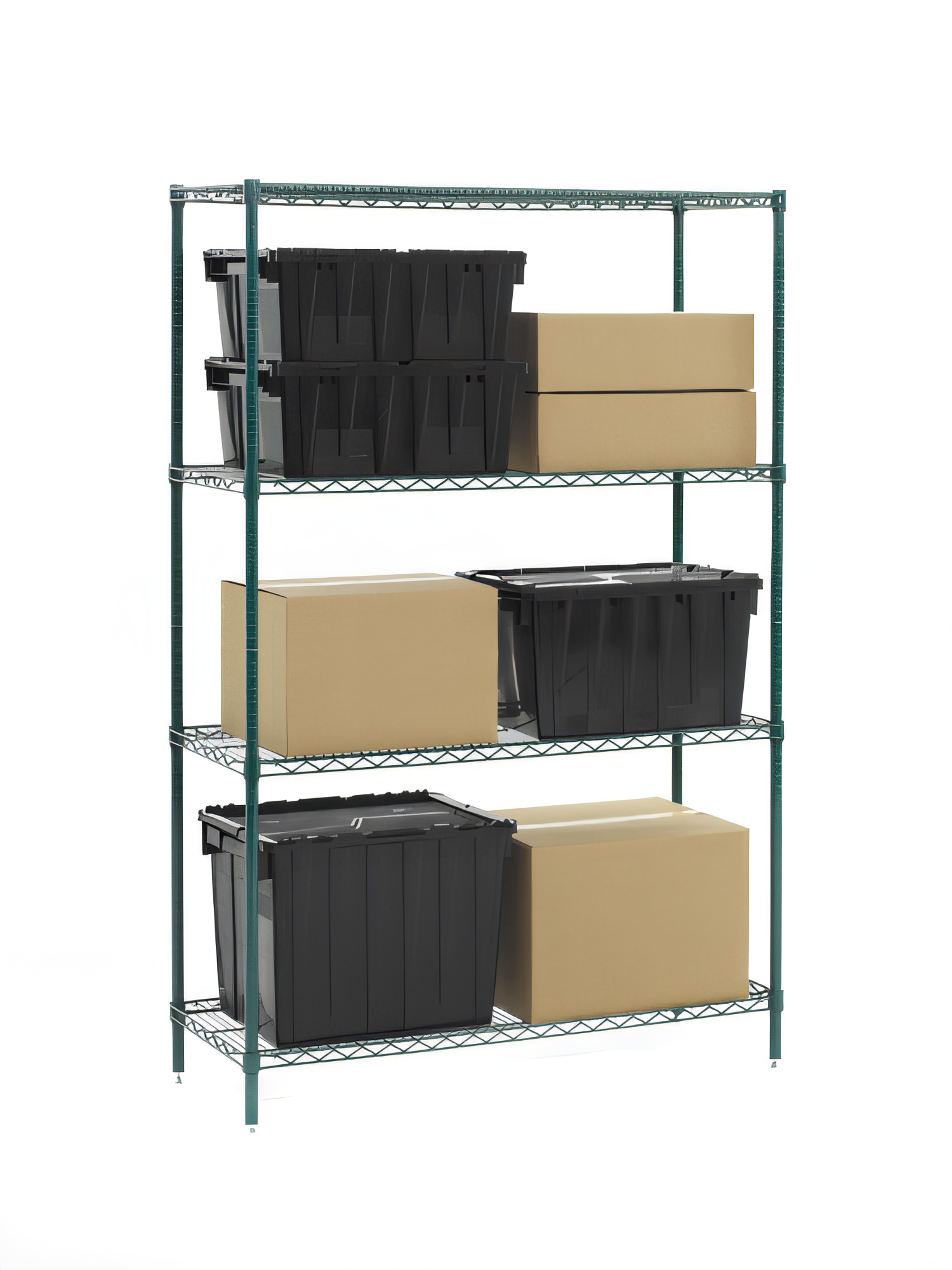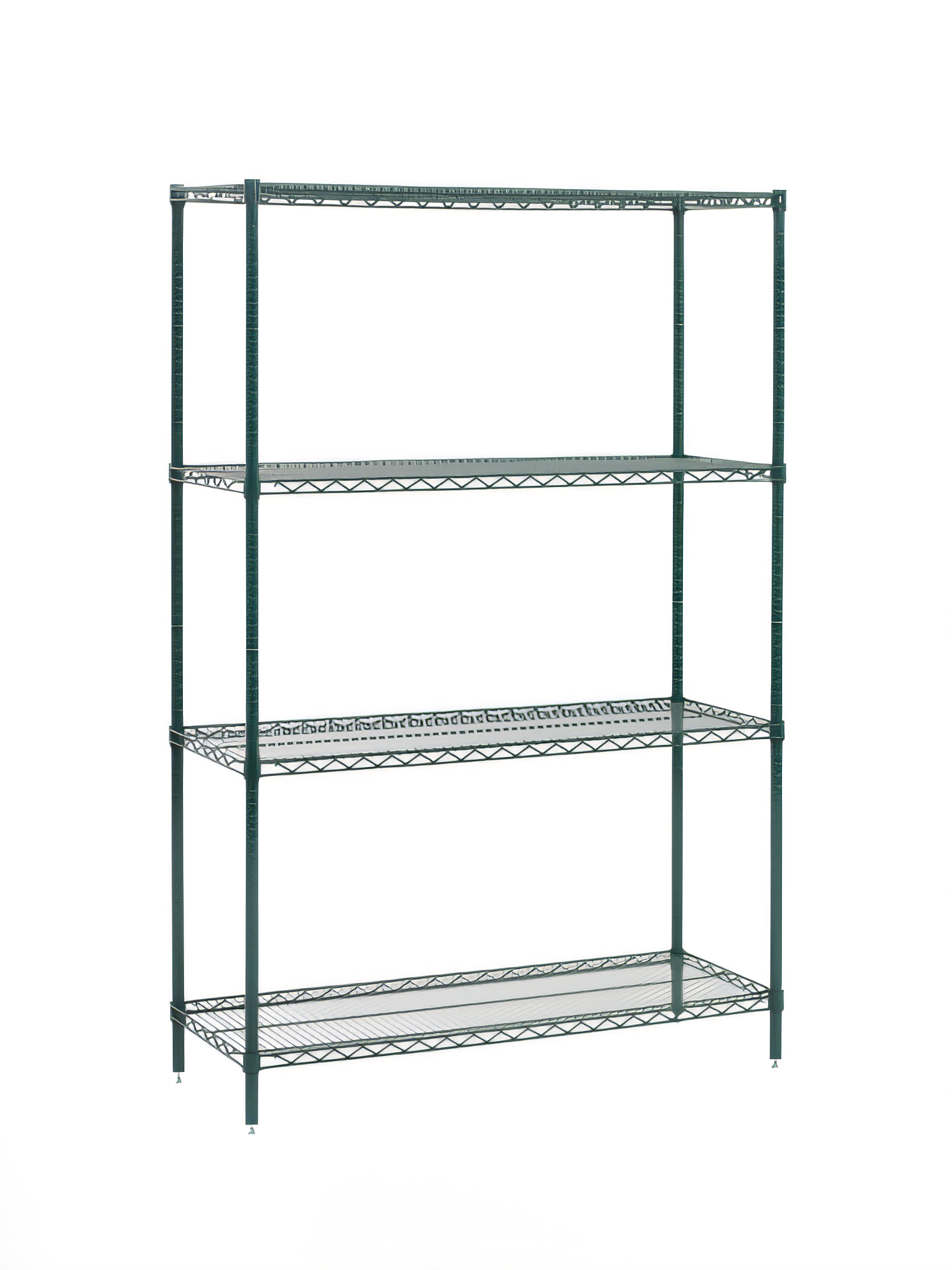 POS Olympic™ Convenience Pack, 18" x 48", includes: (4) 18" x 48" adjustable wire shelves & (4) 74" split posts, chromate with Olympic Green-Guard™ epoxy finish, NSF