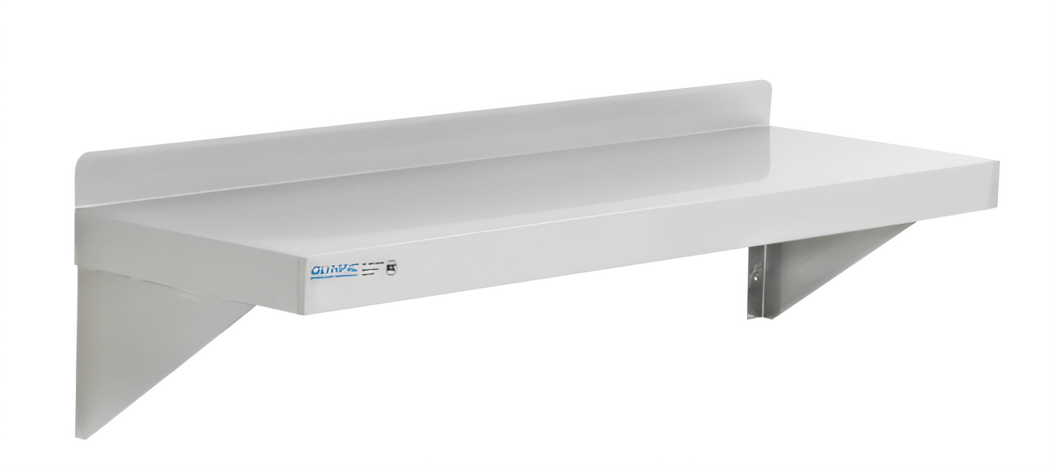 Olympic JWS1236SS Wall-Mounted Shelving - Heavy-duty 36" x 12" fabricated wall shelf in durable 18/304 stainless steel. Supports up to 300 lb with two sturdy brackets for reliable commercial or residential storage. Sleek, corrosion-resistant design ideal for kitchens, garages, and utility spaces.