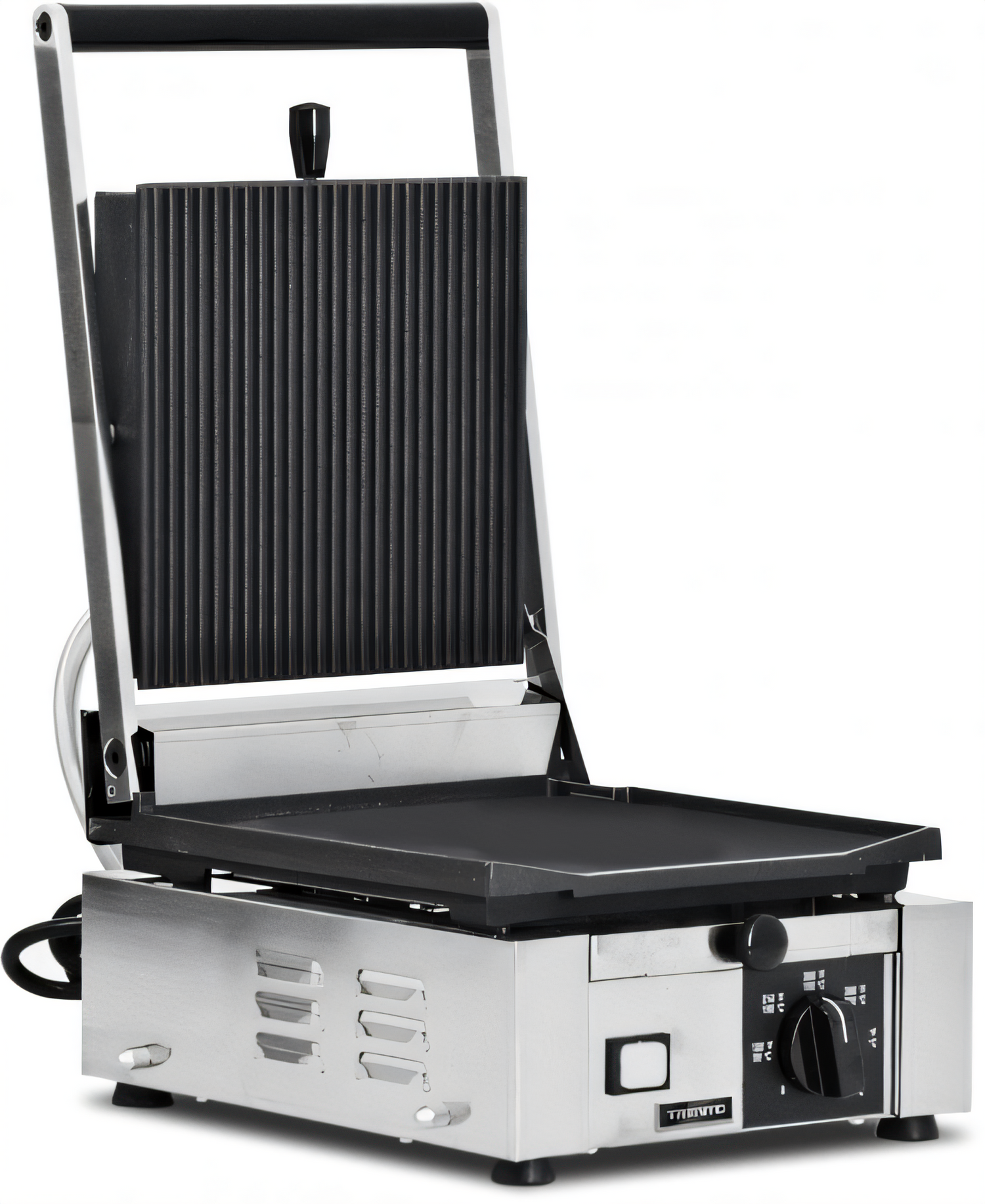 (PG-IT-0483) Trento Sandwich Grill, single, 10" x 9" grill surface, 570°F thermostat control, cast iron ribbed top & flat bottom grilling surface, stainless steel body, 120v/60/1-ph, 15 amps, 1.7kW, cord, NEMA 5-20P, ETL & ETL-Sanitation, Made in Italy