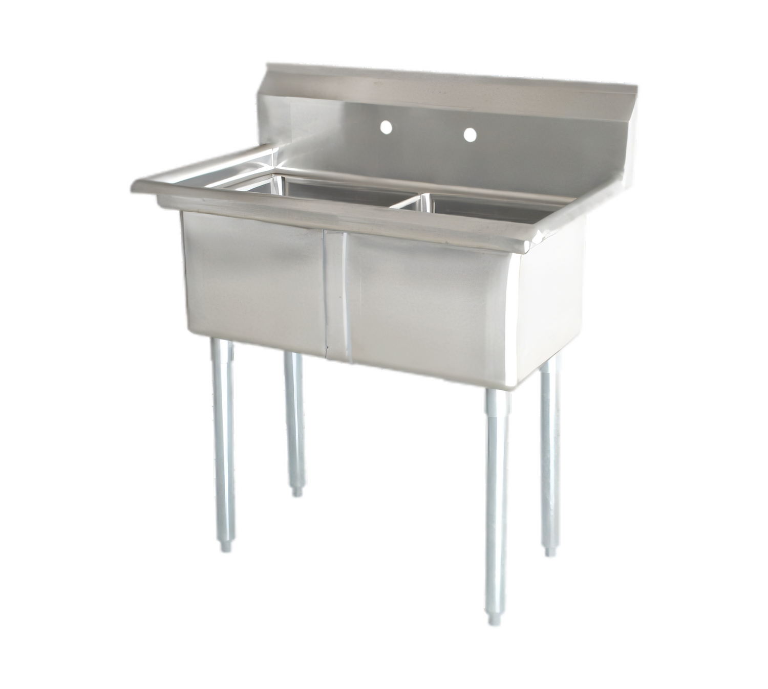 (22113) Pot Sink, (2) 18" front to back x 18" wide x 11" deep bowls, 8" center faucet holes, 9-3/4" backsplash, corner drains, galvanized legs with adjustable bullet feet, 18 gauge, 304 stainless steel, NSF (no drain board) (shipped on pallet)