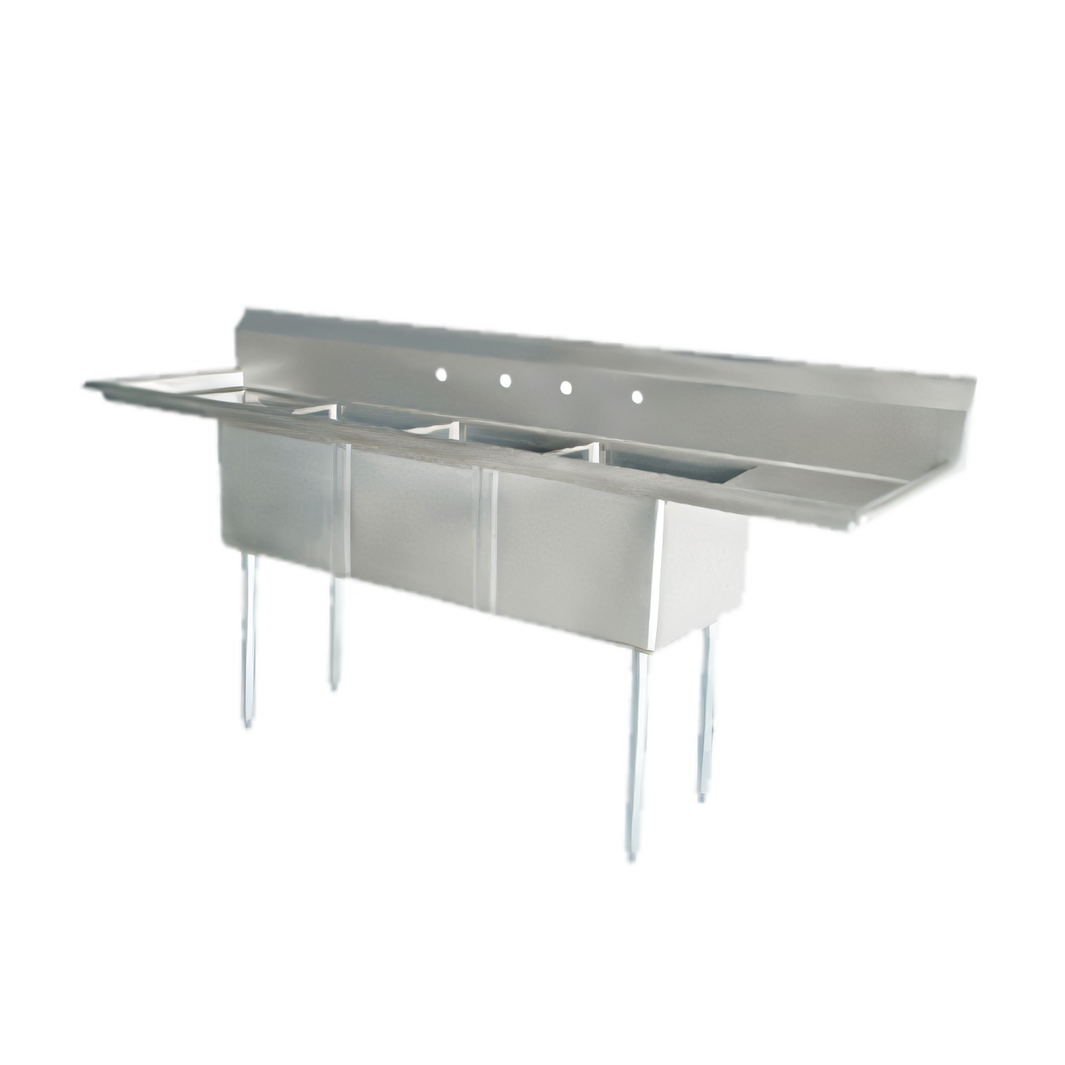 Omcan 25273 Three-Compartment Pot Sink with Double Drainboard – 90"