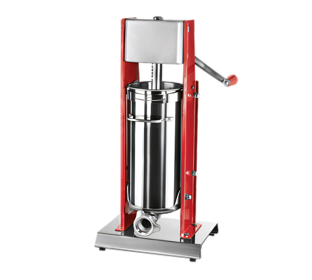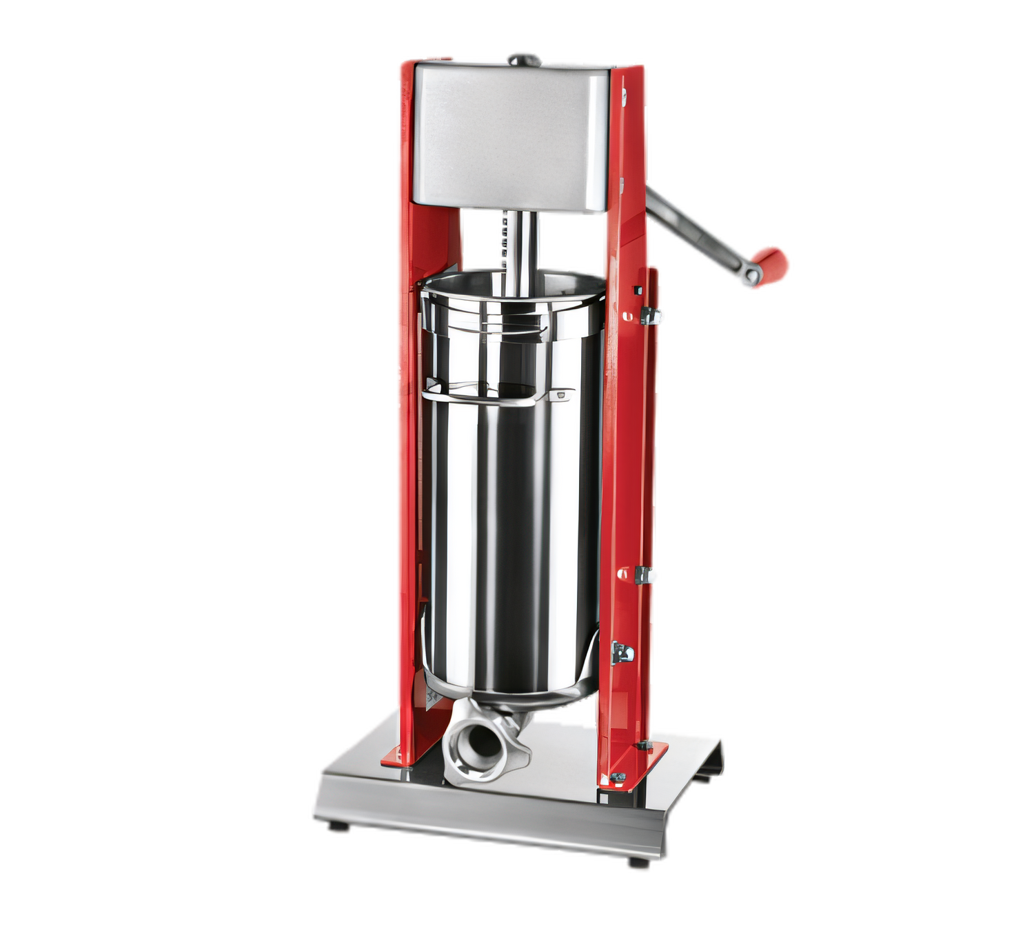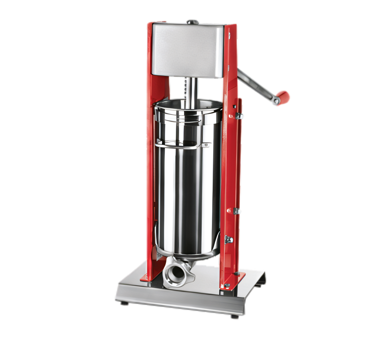 (38000) Elite Series Sausage Stuffer, manual, vertical, 15 lbs. (7 kg) capacity, 2 speed, gear driven, stainless steel cylinder & feet, enameled steel sides, includes 10mm, 20mm, 30mm, & 40mm plastic funnels, Made in Italy