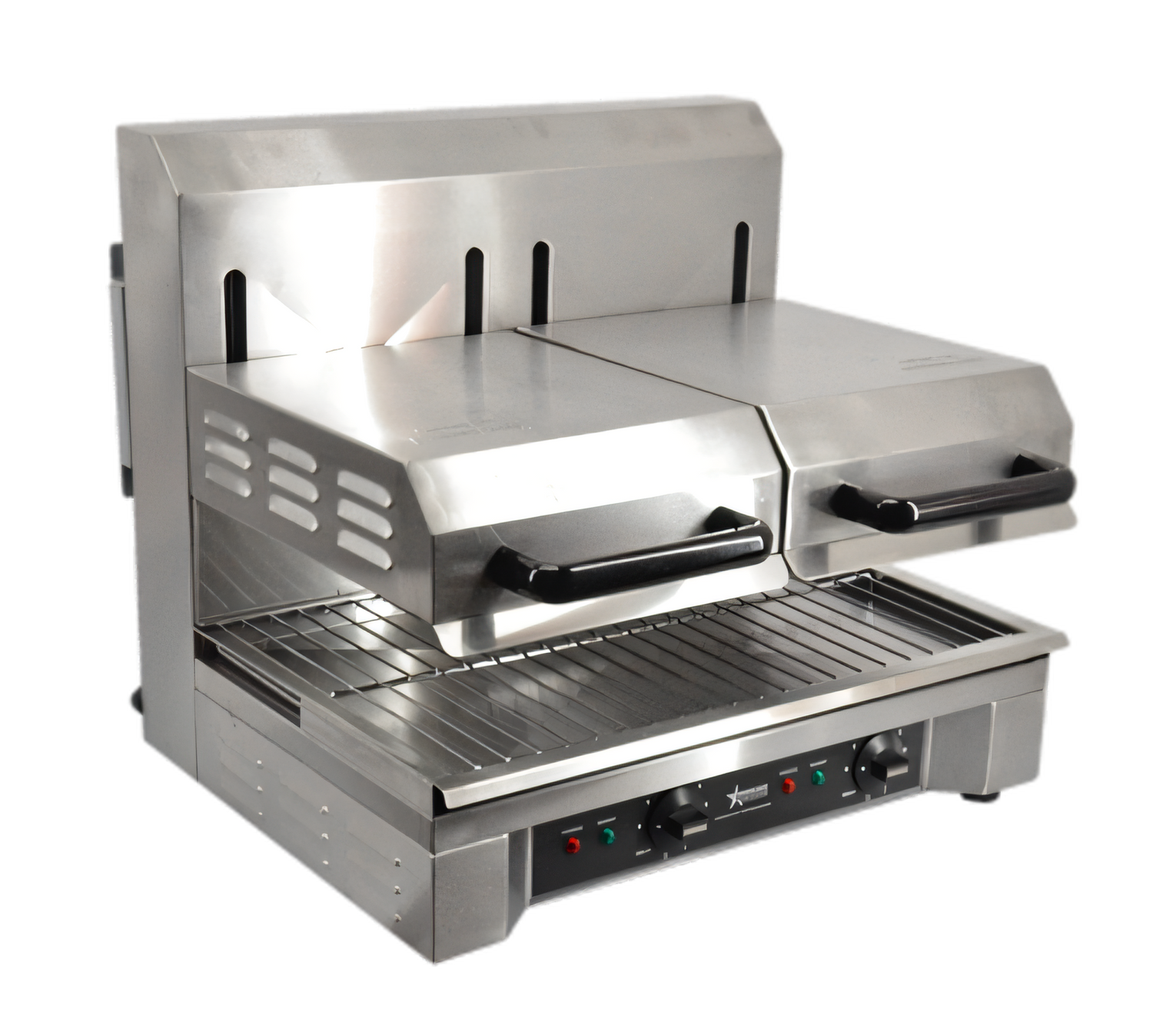 - Two independent decks let you broil twice the volume—or run a single side during slow periods to conserve power.