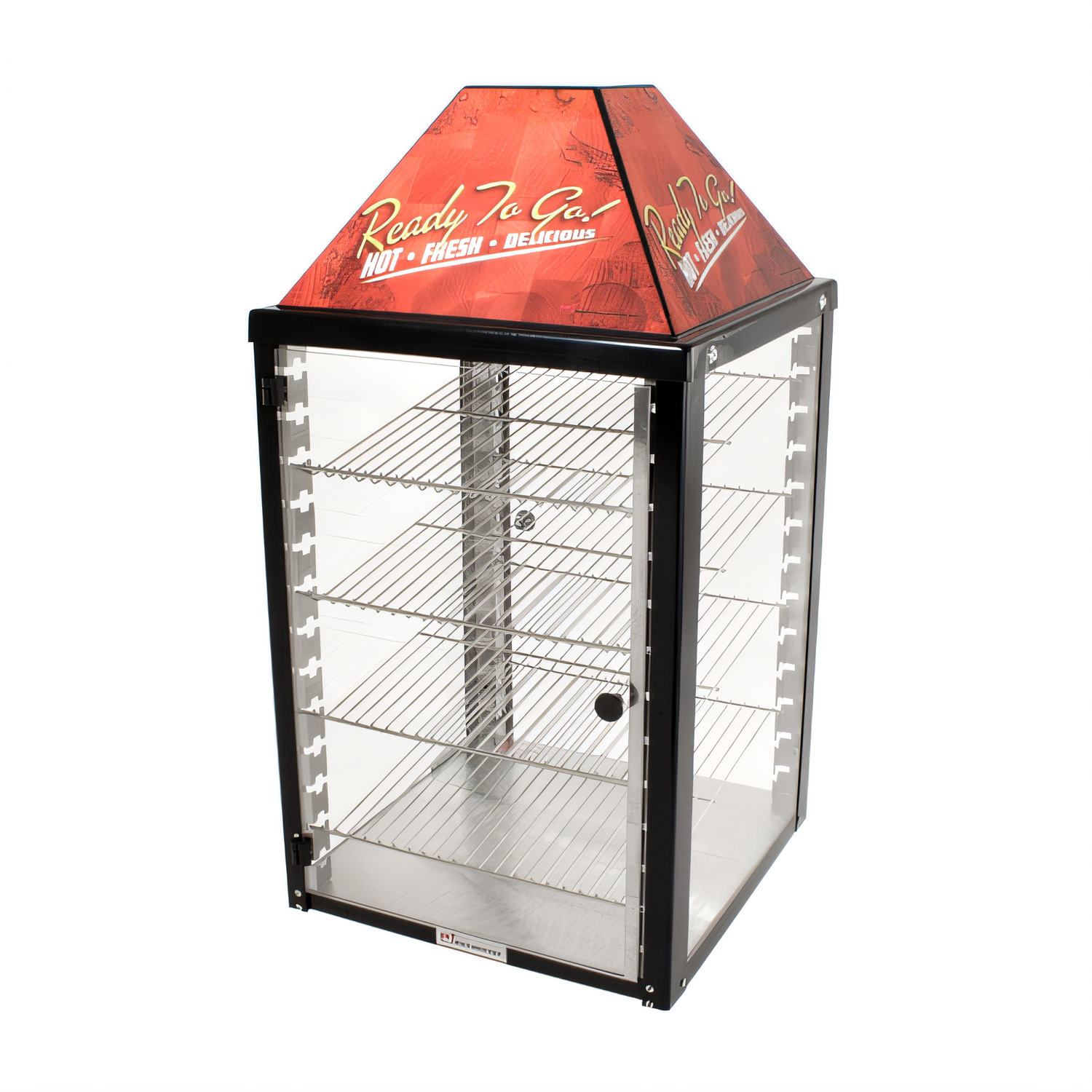 - Straight tempered glass sides and an acrylic top maximize product visibility on every side.