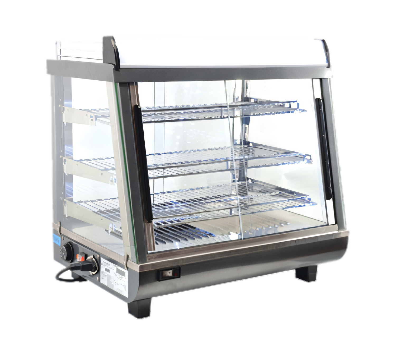 (DW-CN-0096) Elite Series Heated Display Case, countertop, full/self-service, 25-3/4"W, (3.39) cu.ft. interior capacity, (3) adjustable chrome-plated shelves, adjustable temperature controller/display, 86°-194°F temperature range, LED canopy, (3) interior lamps, front & rear sliding glass doors, glass sides, 110v/60/1-ph, 0.98kW, 9.1 amps, cord, NEMA 5-15P (shipped on pallet)