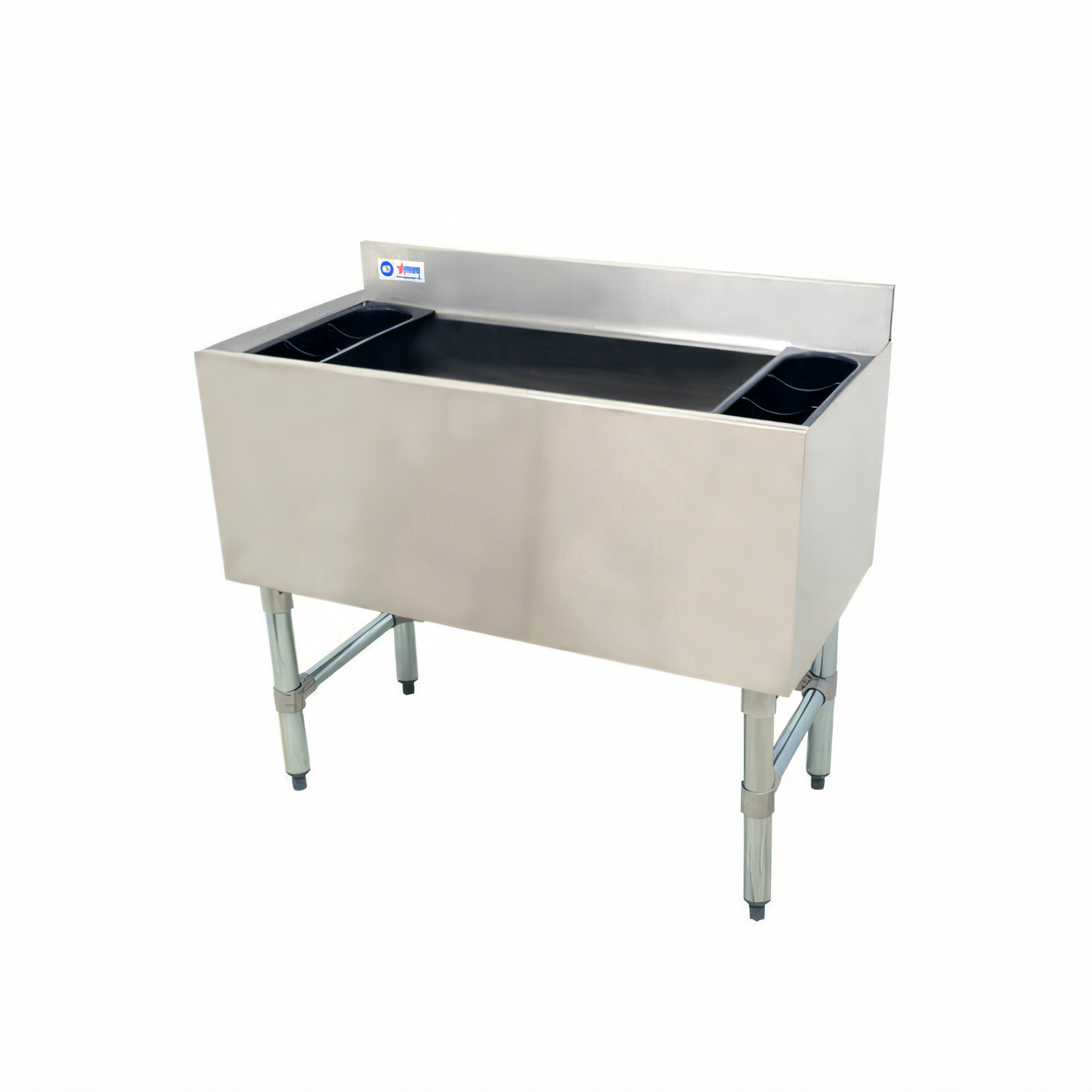 Model 43478 • 7-Circuit Post-Mix Cold Plate • NSF ListedBuilt for busy bars and beverage stations, the Omcan 43478 delivers ice, mixes, and reliability in one rugged station. A fully insulated 119 lb capacity bin keeps your ice solid for hours, while the integrated 7-circuit aluminum cold plate chills post-mix soda lines for frosty, great-tasting drinks glass after glass.