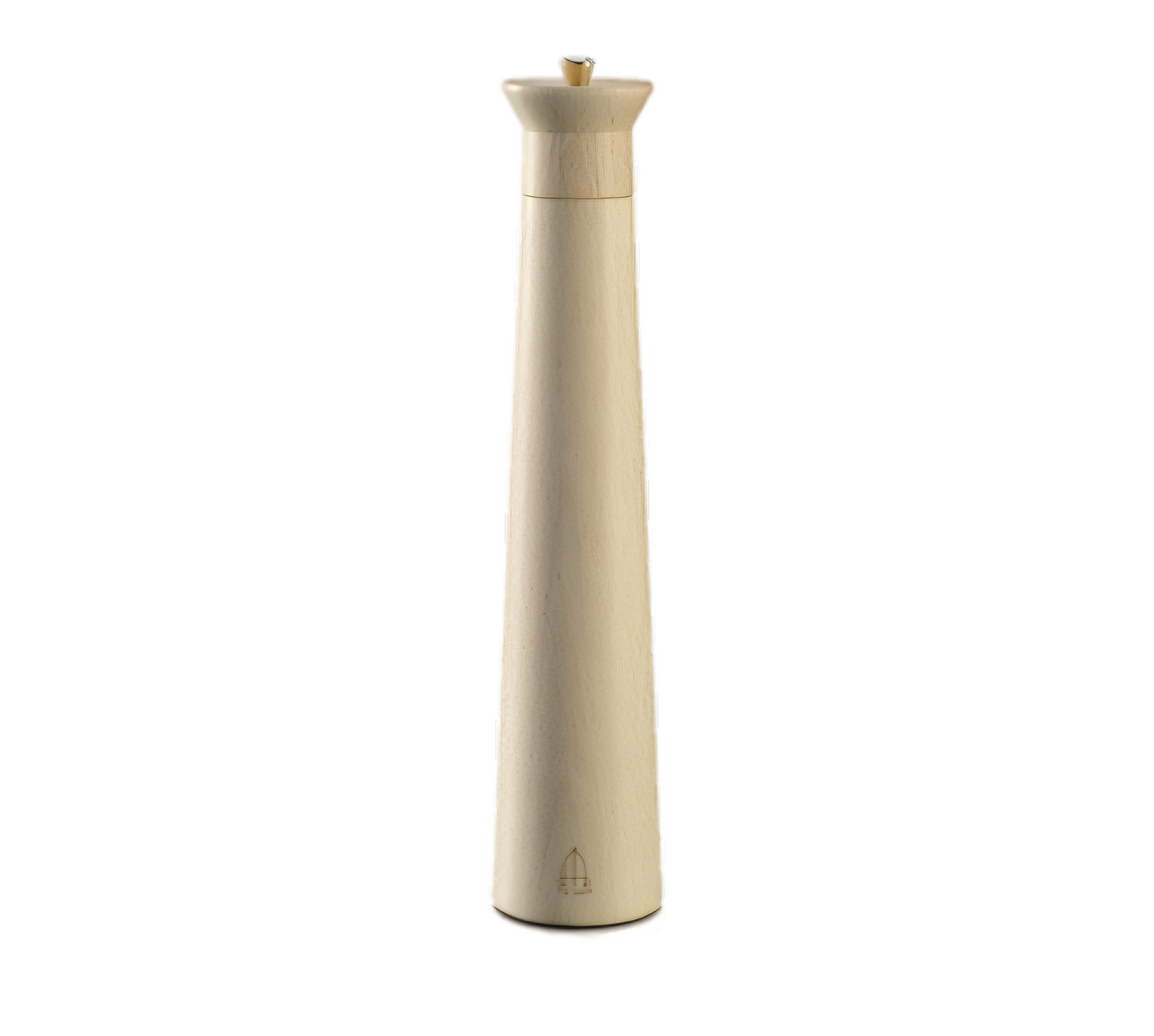 (43691) TRE SPADE Nabucco Series Pepper Mill, 30cm (11.81") tall, tempered steel conic mechanisms, aluminum shaft, PEFC-certified beech wood construction, light beech wood finish, 20-year guarantee, Made in Italy