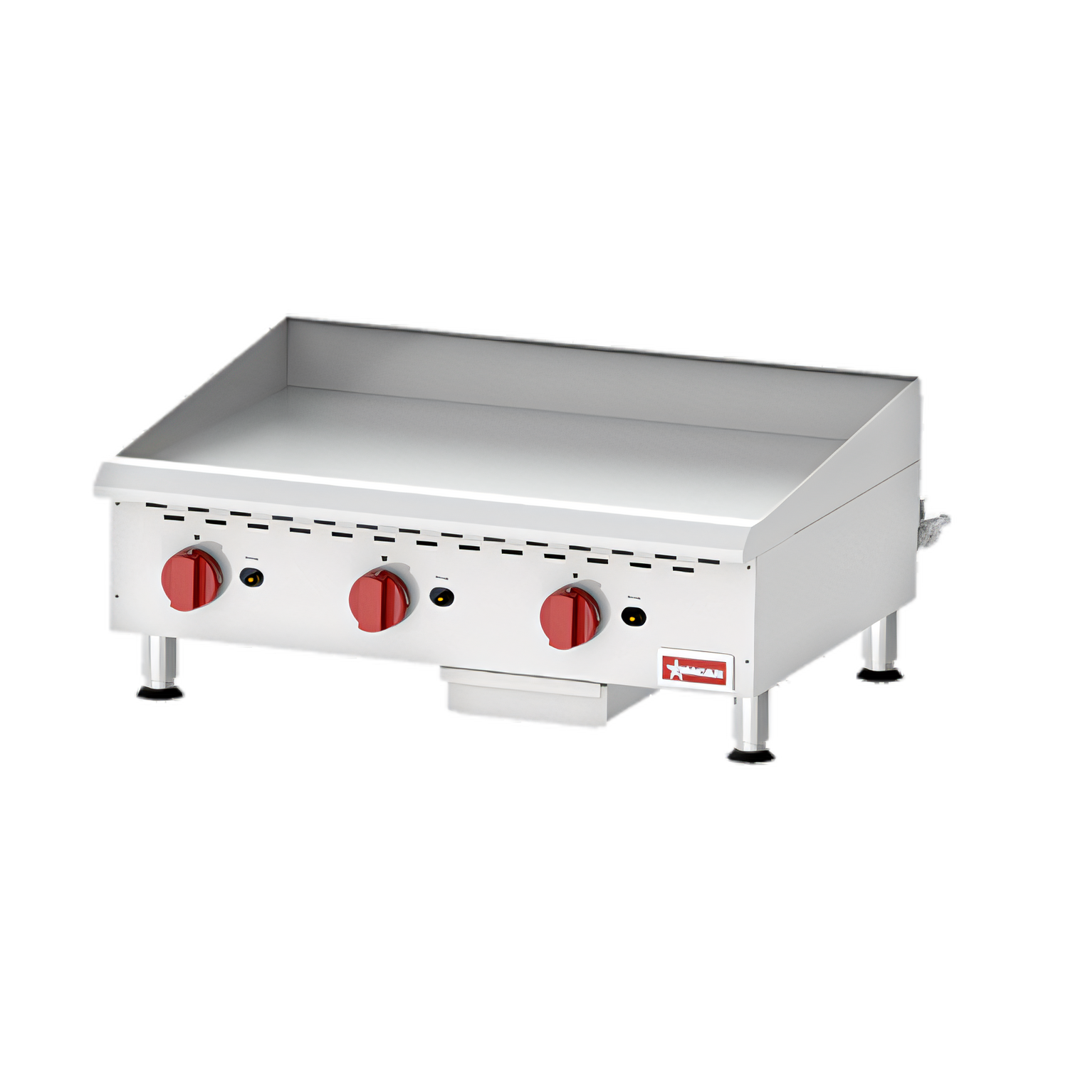 90,000 BTU • 3 Burners • 3/4" Polished Steel PlateMeet the workhorse your kitchen has been waiting for. The Omcan CE-CN-G36M delivers powerful performance, even heat, and rock-solid durability in a space-saving countertop design—perfect for high-volume breakfast, lunch, or dinner service.
