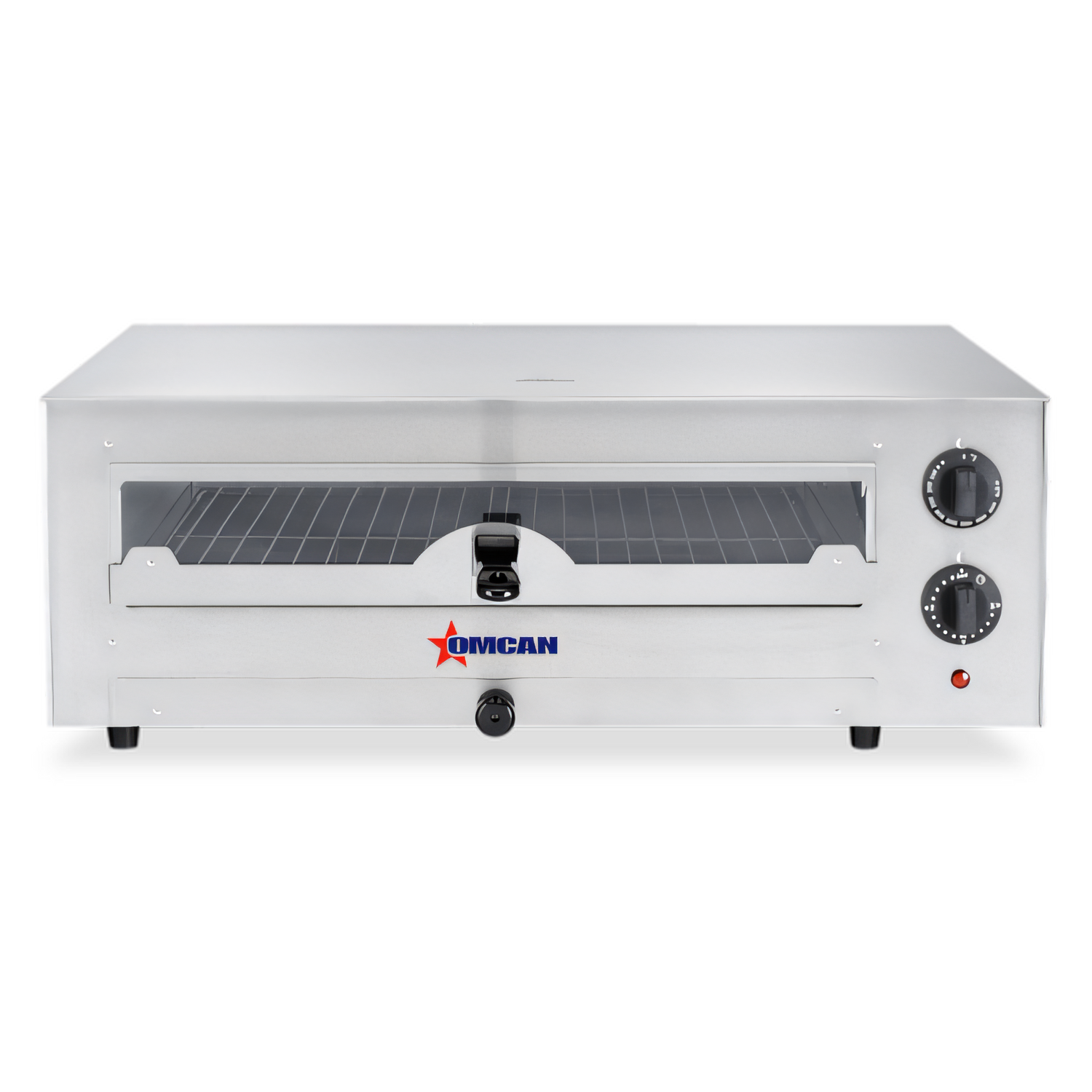 Omcan USA 44309 countertop electric pizza oven — 15" capacity, top/bottom heat, timer, thermostat, stainless steel, 1700W, cETLus certified.