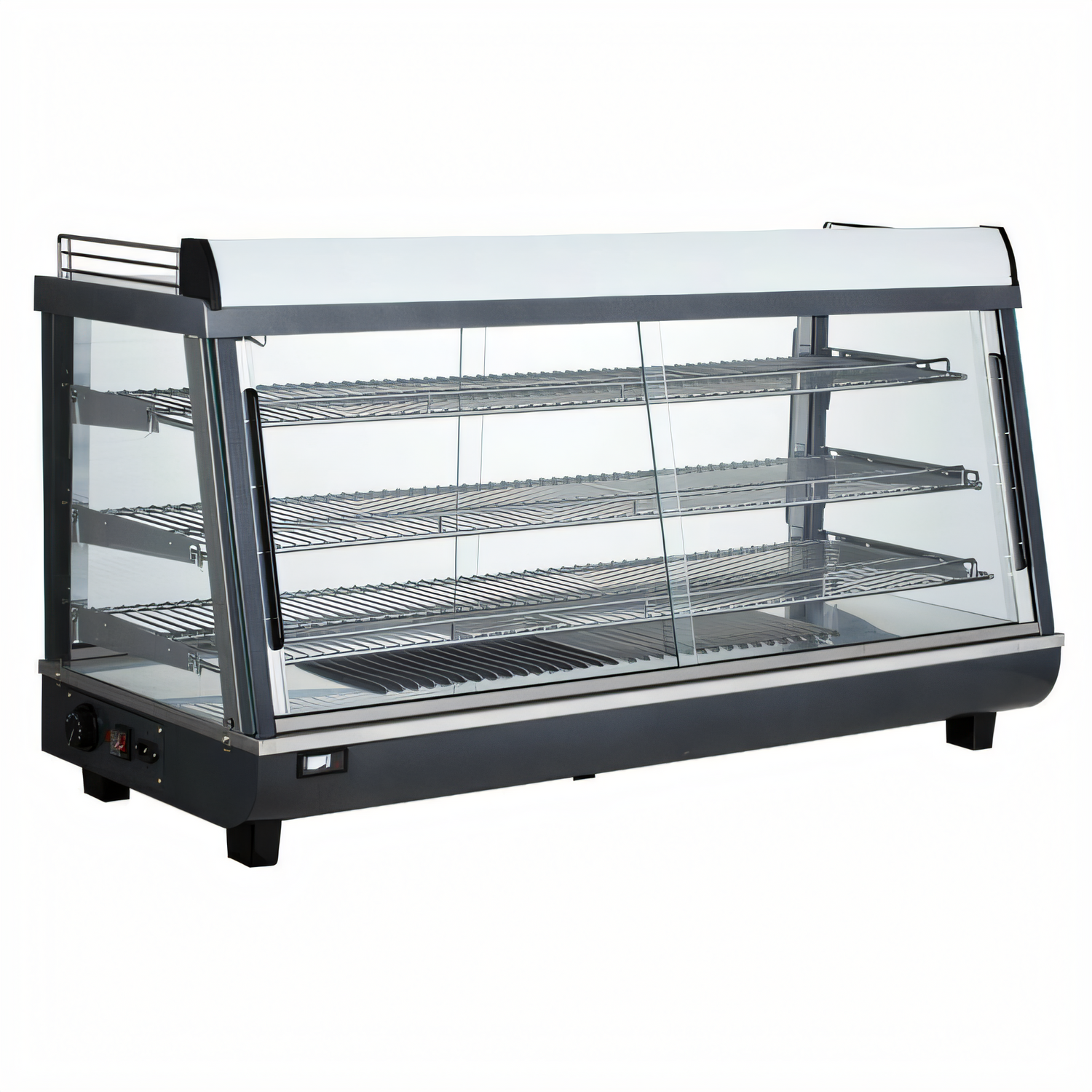Model DW-CN-0186 | 6.6 cu ft Self-Service MerchandiserShow off your hot, ready-to-eat favourites while keeping them at safe serving temperatures. Omcan’s DW-CN-0186 countertop heated display case combines brilliant LED lighting, adjustable chrome shelves, and precise temperature control in a compact 47-inch footprint—perfect for convenience stores, cafés, concession stands, and grab-and-go stations.