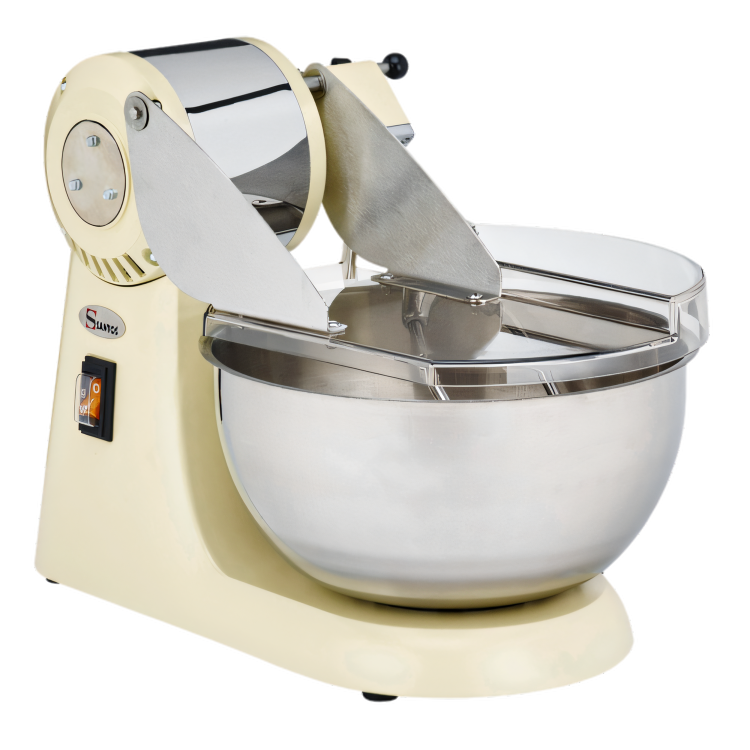 (Santos 18) Trento Santos® Dough Mixer, 10L bowl capacity, transparent cover, stainless steel bowl, asynchronous motor, 1800 RPM, 650 watts, 110v/60/1-ph CE