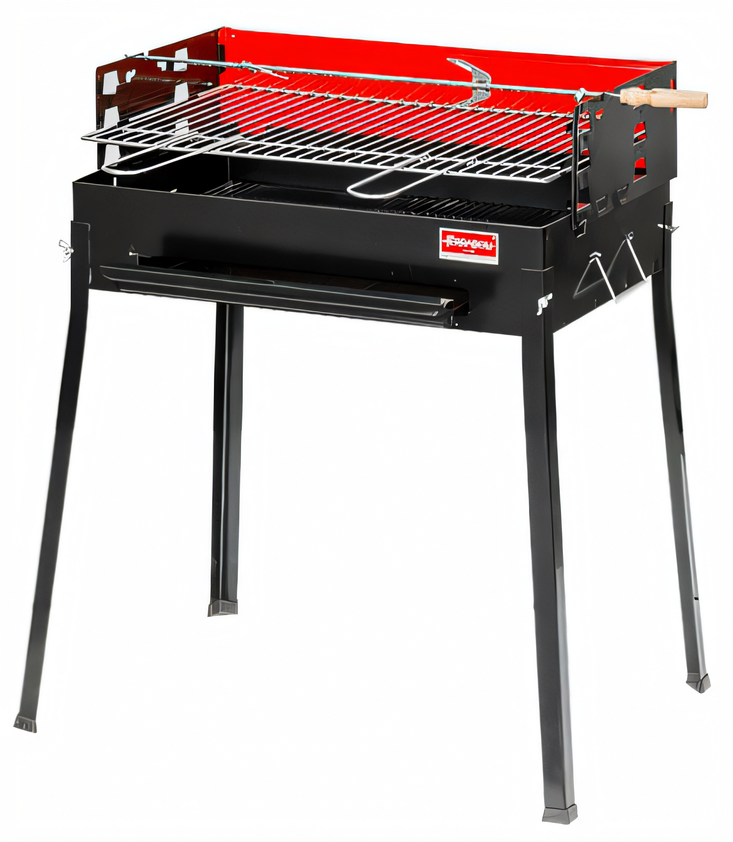 Painted Steel Charcoal BBQ Grill, 33.5" H x 27.6" W x 16.1" D, with 2 wheels, cooking area 23.6" x 15.7", made in Italy