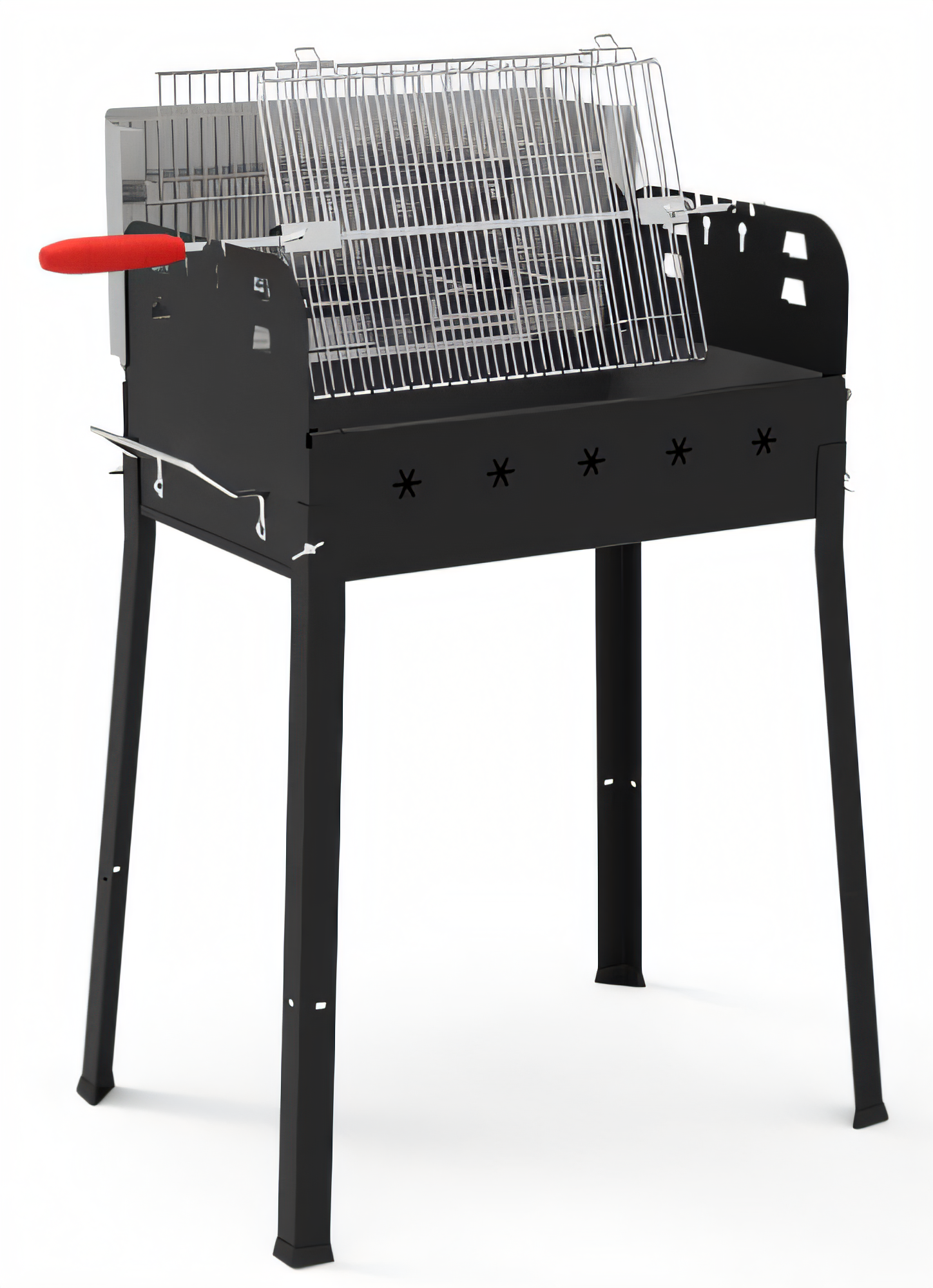 Painted Steel Charcoal BBQ Grill, 39.4" H x 40.2" W x 20.1" D, with stainless steel double grid and central rod for vertical cooking, cooking area 22.8" x 14.6", made in Italy
